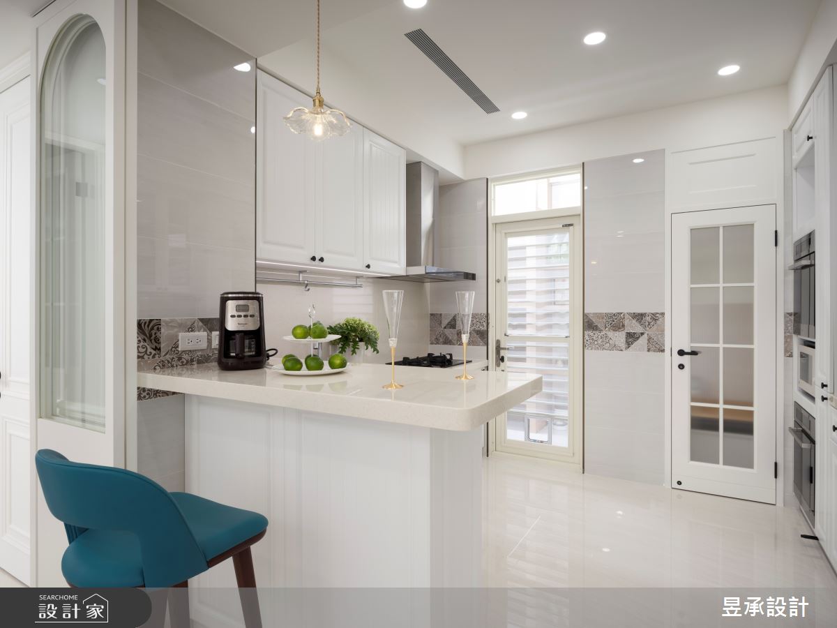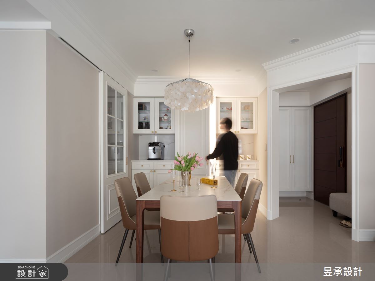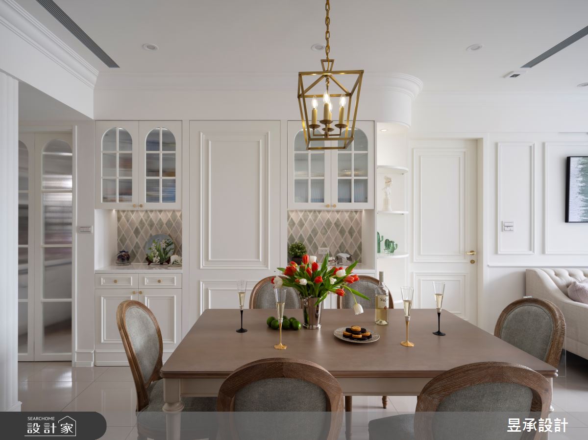 來自昱承室內裝修設計的33.5坪美式風住宅案,屋主一家人共有2位大人、2位小孩,是一間單層新成屋(5年以下)的三房格局,設計師藉由建材以乳膠漆、超耐磨木地板、烤玻、木作貼皮、烤漆、系統板材、繃布、線板、噴漆、薄板磚、造型曲板的搭配應用,實現一家人的理想生活。