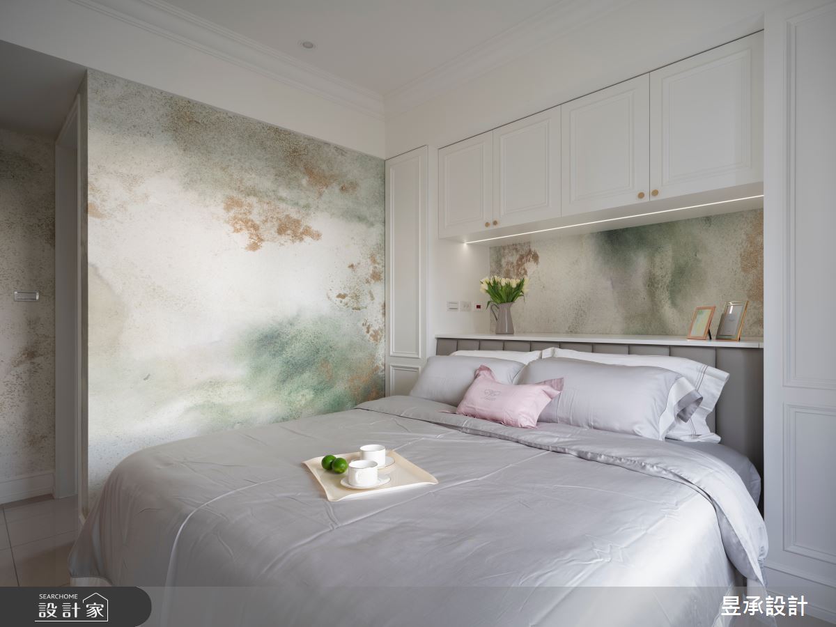 昱承室內裝修設計以乳膠漆、花磚、壁紙、木作貼皮、系統板材、木百葉、人造石、線板、噴漆的搭配應用,呈現美式風居家氛圍,將此間25坪、三房、單層、預售屋打造成舒適愜意的家庭空間,完成4位大人全家人的夢想之居。