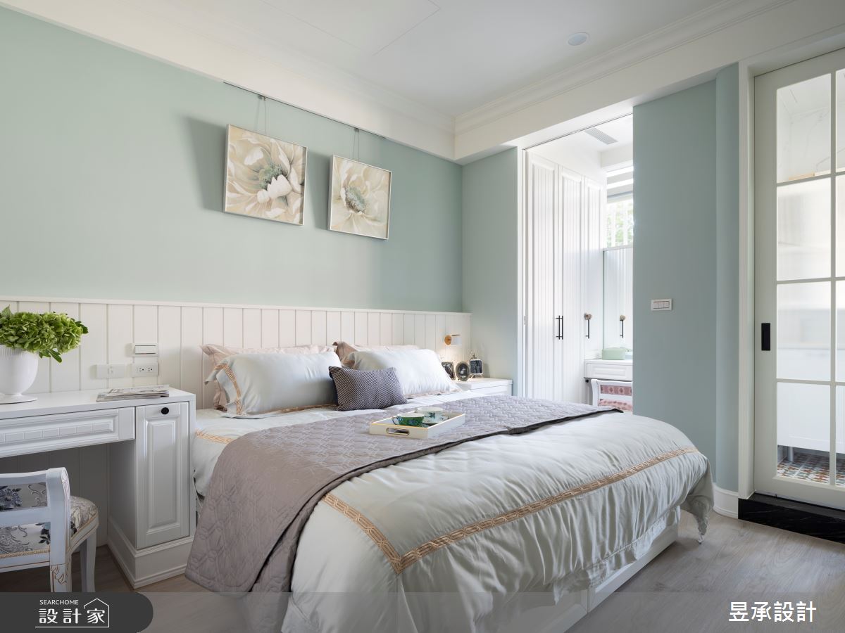 昱承室內裝修設計以油漆、乳膠漆、花磚、超耐磨木地板、石英磚/拋光石英磚、鐵件、烤玻、木作貼皮、系統板材、木百葉、人造石、線板、噴漆、小冰柱玻璃、茶鏡的搭配應用,呈現美式風居家氛圍,將此間40坪、五房、單層、老屋(50年以上)打造成舒適愜意的家庭空間,完成4位大人全家人的夢想之居。