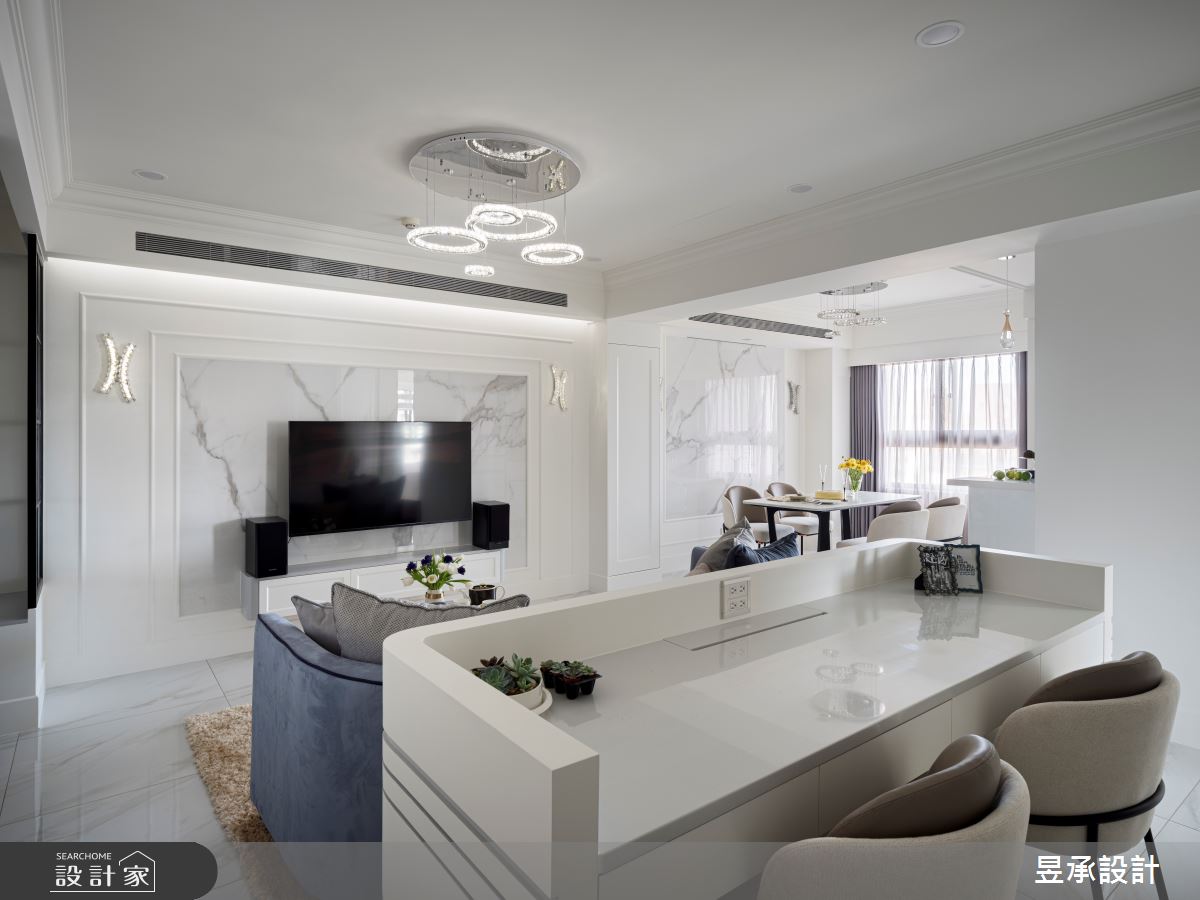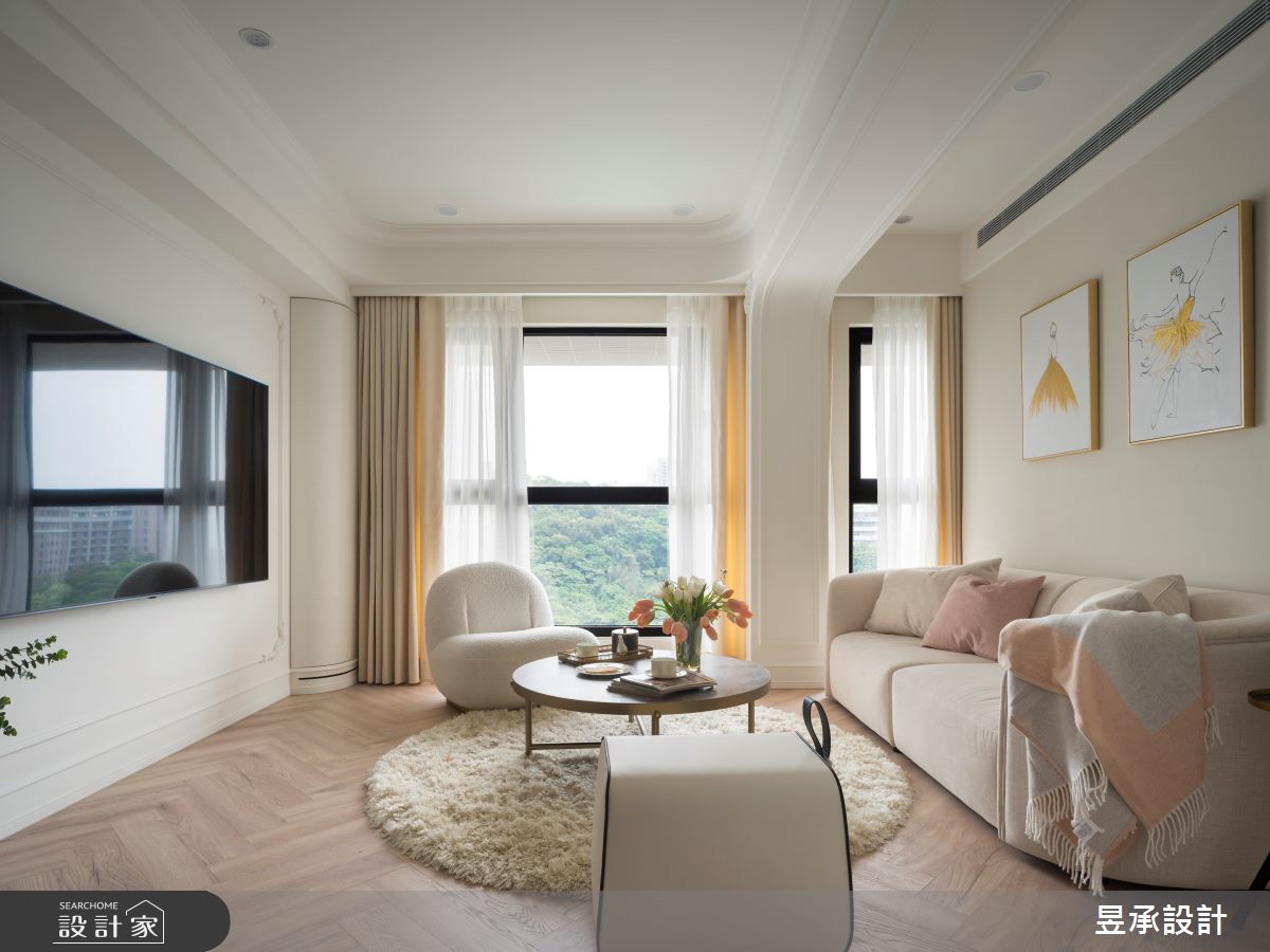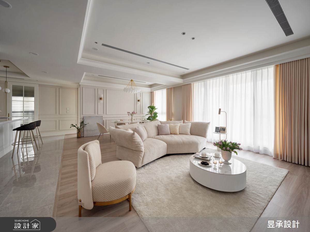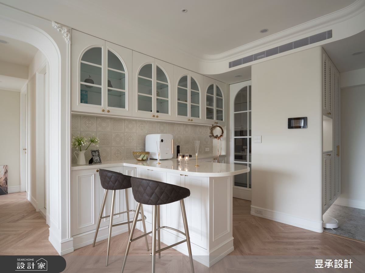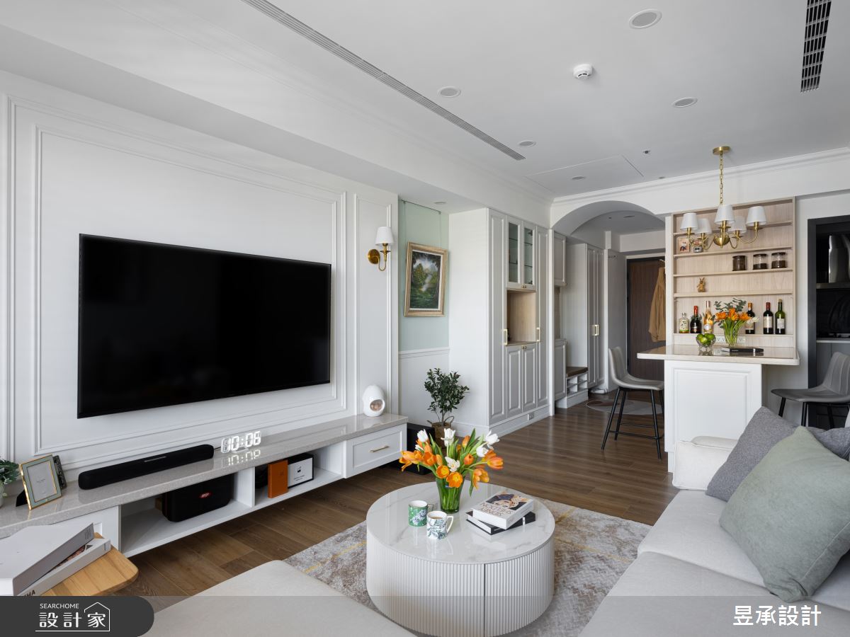 由昱承室內裝修設計精心規劃的44.5坪三房住宅空間,家庭成員一共有2位大人。因應屋主需求,設計師運用法式風作為主軸,搭配乳膠漆、超耐磨木地板、石英磚/拋光石英磚、木作貼皮、系統板材、磁磚、人造石、線板、噴漆、大板磚,打造全家人的夢想家居。