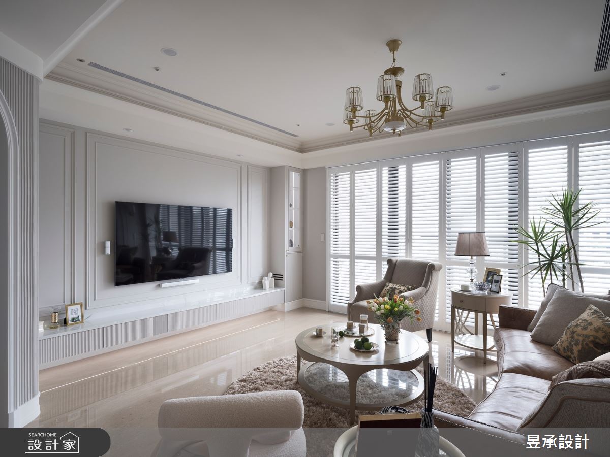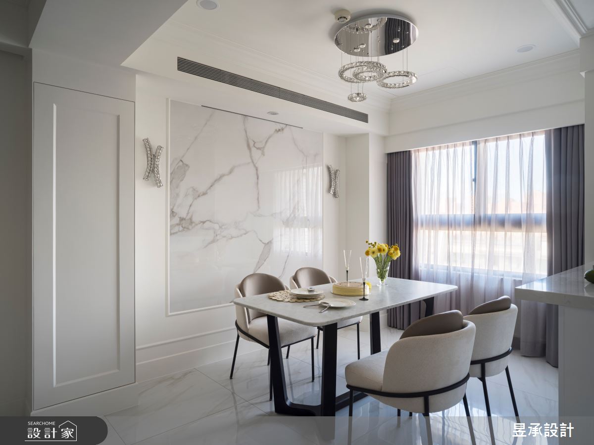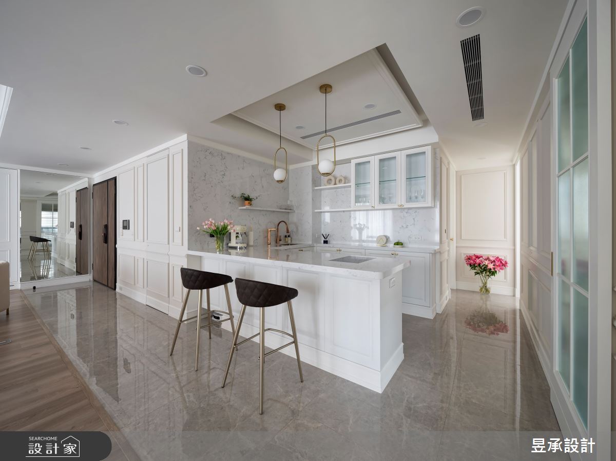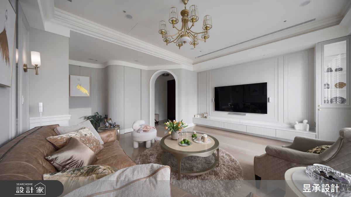 由昱承室內裝修設計精心規劃的44.5坪三房住宅空間,家庭成員一共有2位大人。因應屋主需求,設計師運用法式風作為主軸,搭配乳膠漆、超耐磨木地板、石英磚/拋光石英磚、木作貼皮、系統板材、磁磚、人造石、線板、噴漆、大板磚,打造全家人的夢想家居。