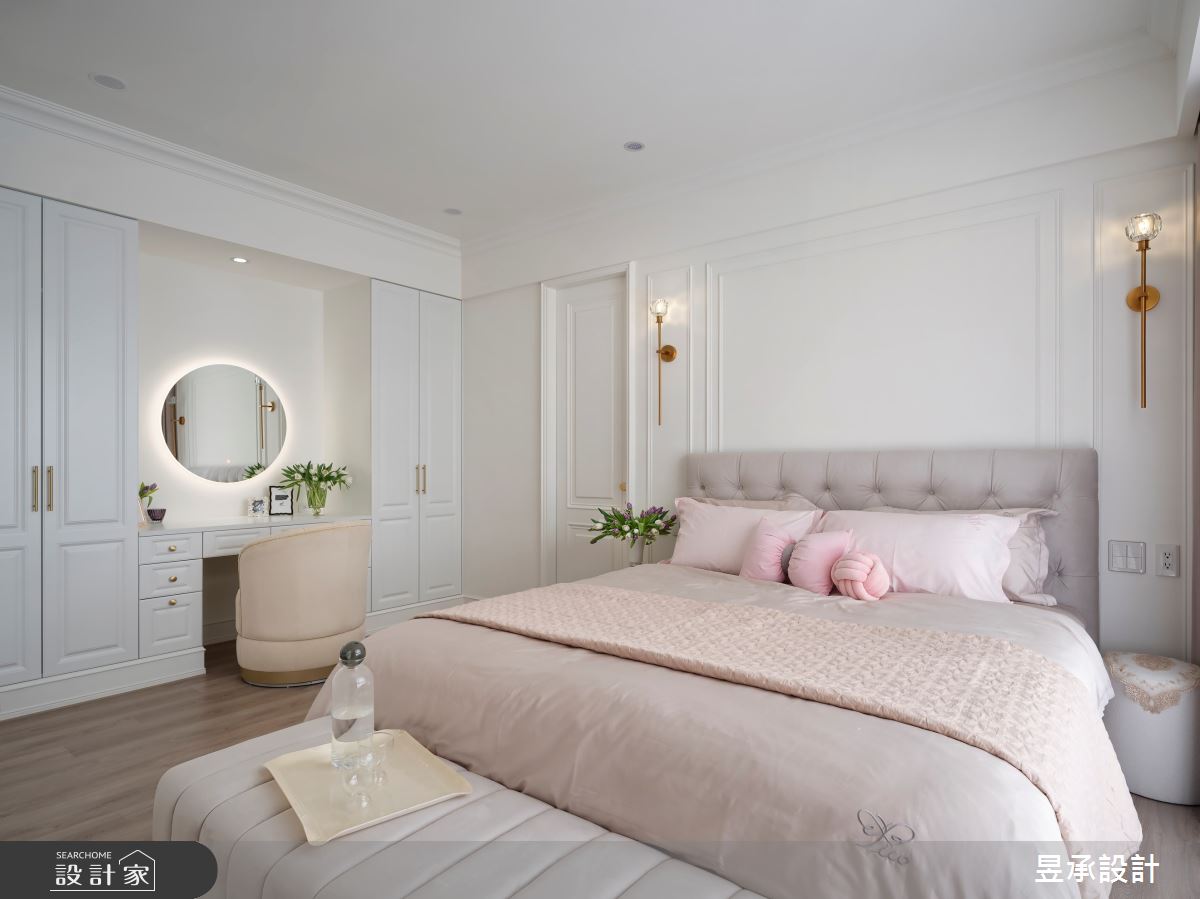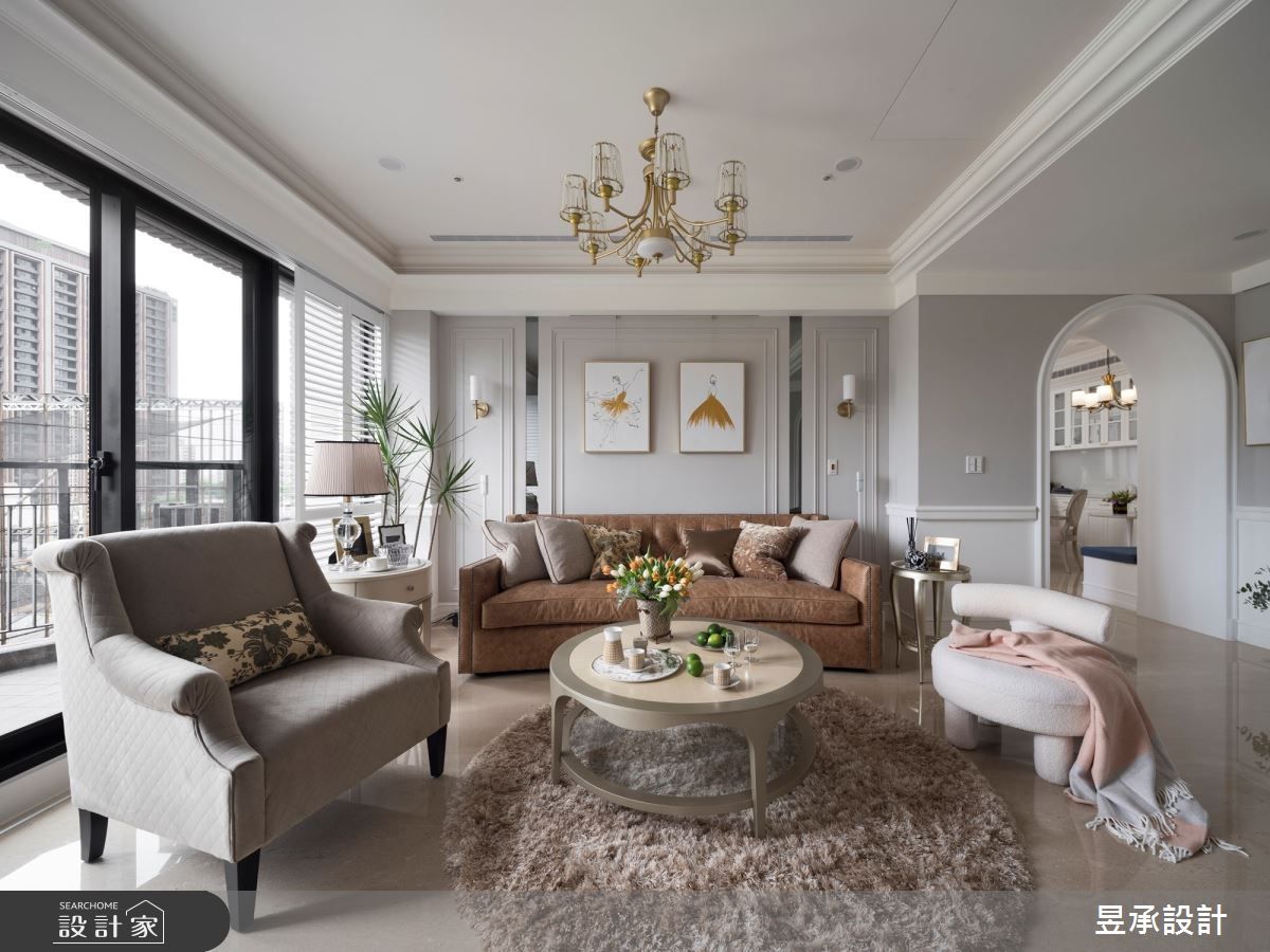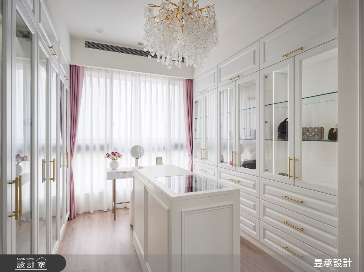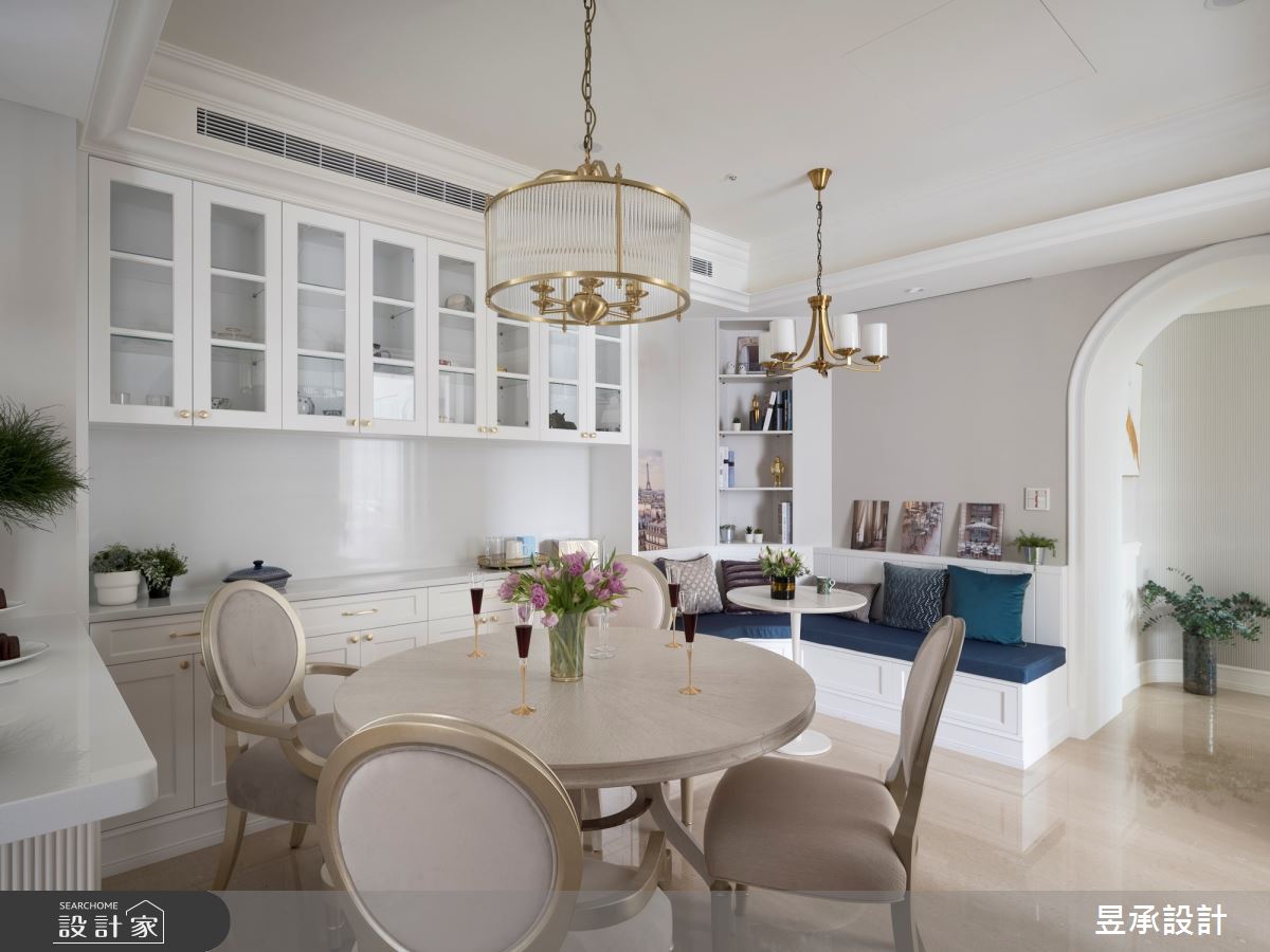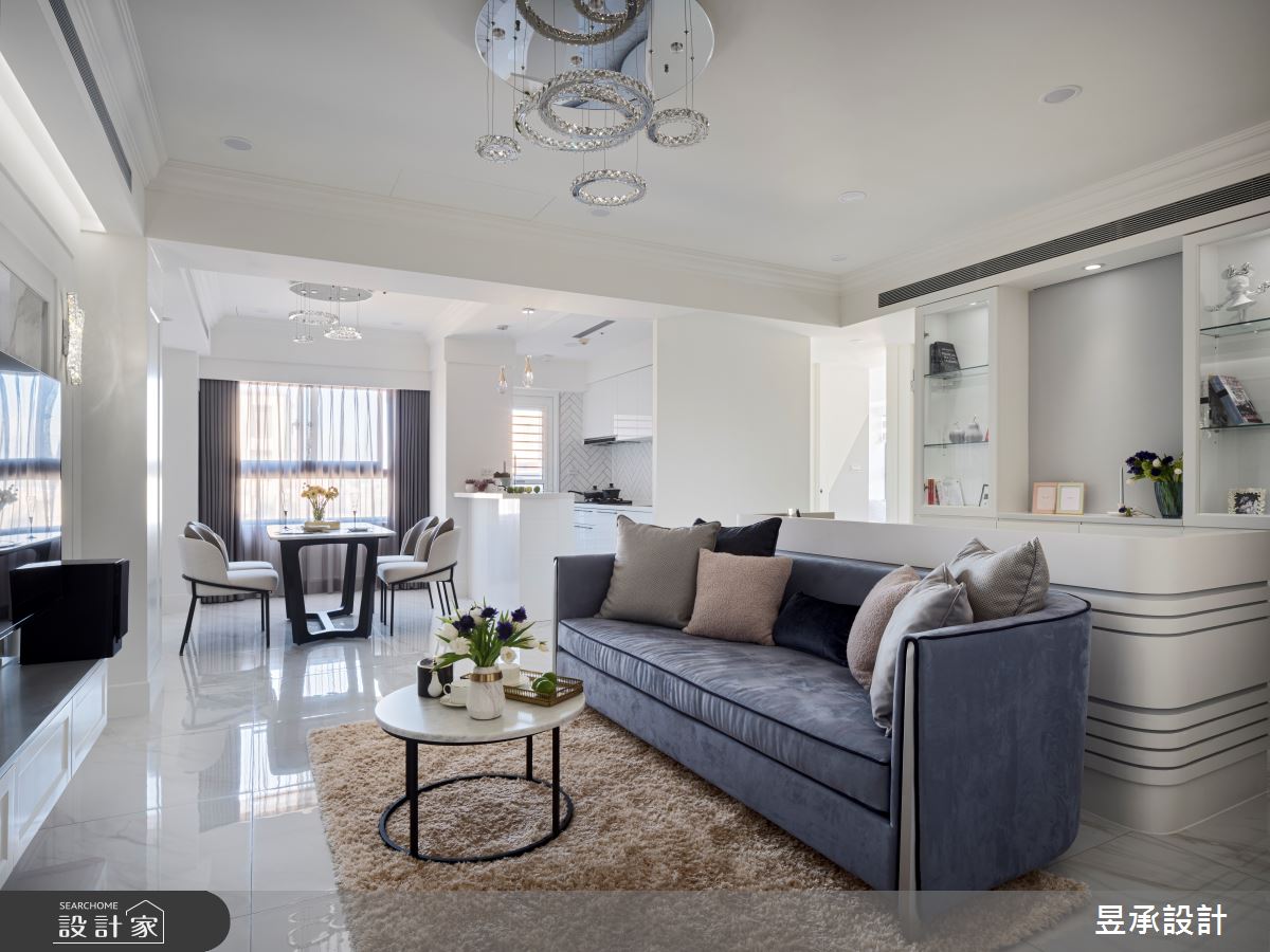 由昱承室內裝修設計精心規劃的44.5坪三房住宅空間,家庭成員一共有2位大人。因應屋主需求,設計師運用法式風作為主軸,搭配乳膠漆、超耐磨木地板、石英磚/拋光石英磚、木作貼皮、系統板材、磁磚、人造石、線板、噴漆、大板磚,打造全家人的夢想家居。