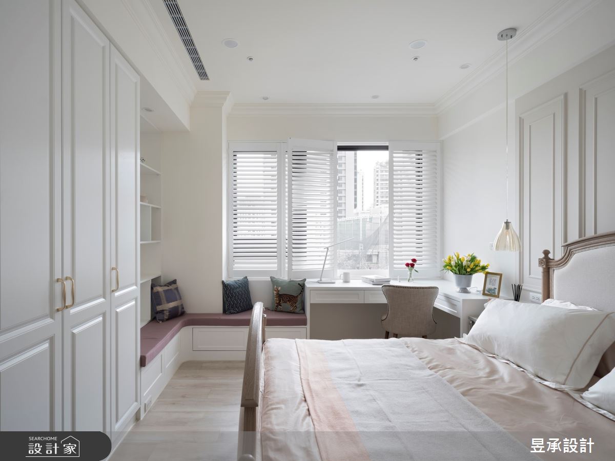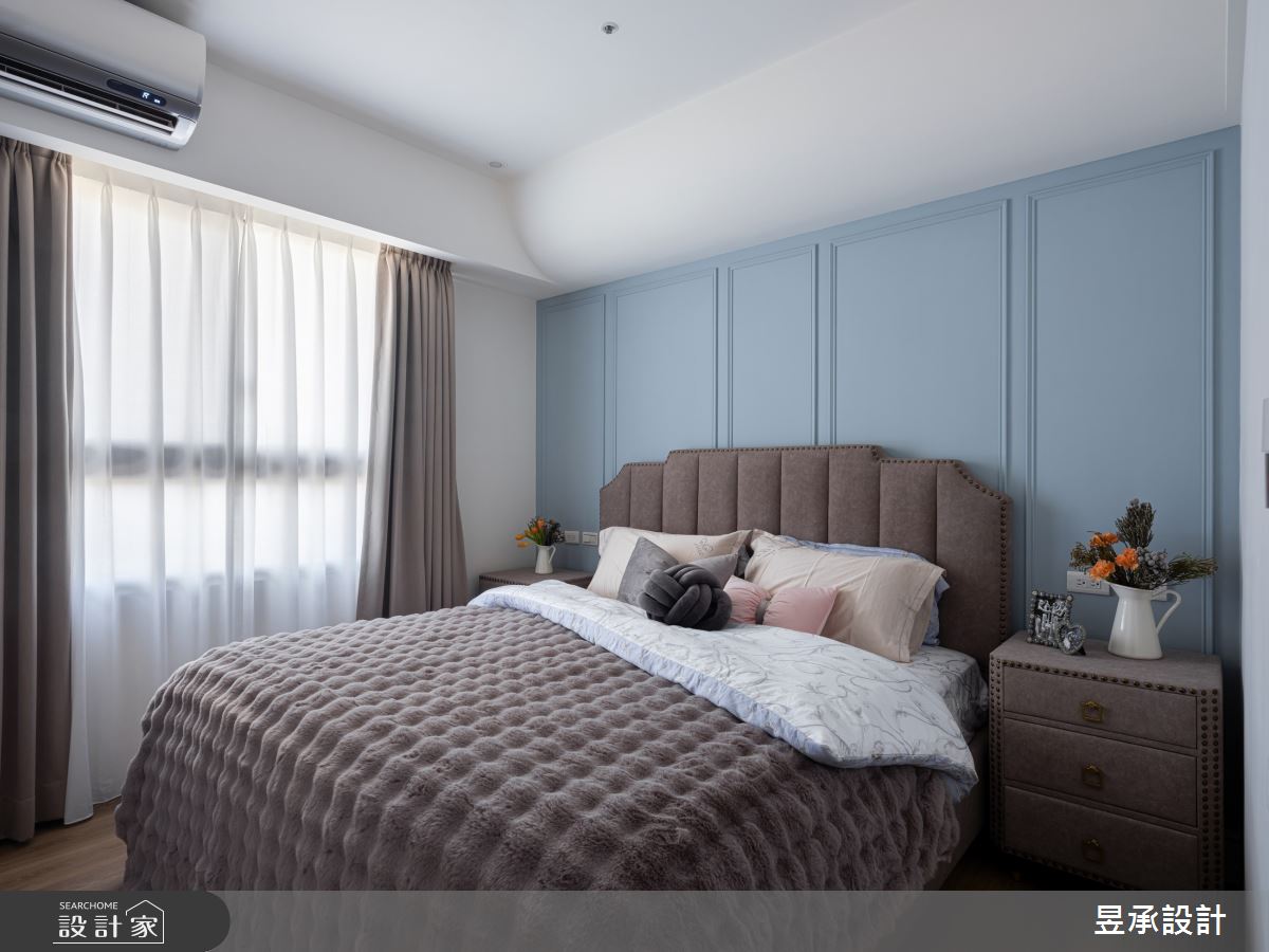昱承室內裝修設計以乳膠漆、超耐磨木地板、灰鏡、木作貼皮、系統板材、大理石、木百葉、人造石、線板、噴漆、大理石拼花、實木曲板的搭配應用,呈現美式風居家氛圍,將此間42坪、三房、單層、新成屋(5年以下)打造成舒適愜意的家庭空間,完成2位大人、2位小孩全家人的夢想之居。
