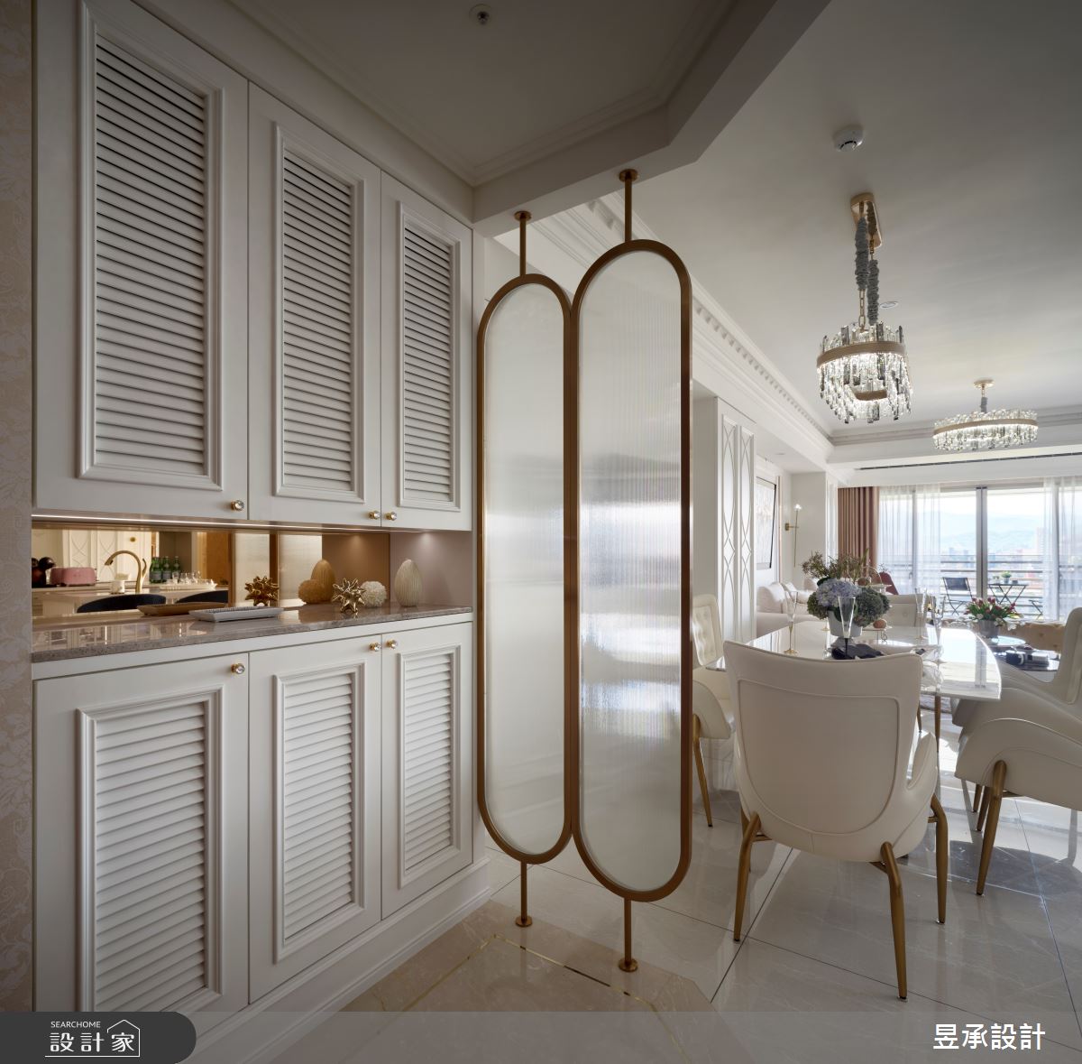 由昱承室內裝修設計精心規劃的41坪四房住宅空間,家庭成員一共有2位大人、2位小孩。因應屋主需求,設計師運用美式風作為主軸,搭配大理石、石英石、磁性烤漆玻璃、花磚、束紗、SHUTTER百葉窗,打造全家人的夢想家居。