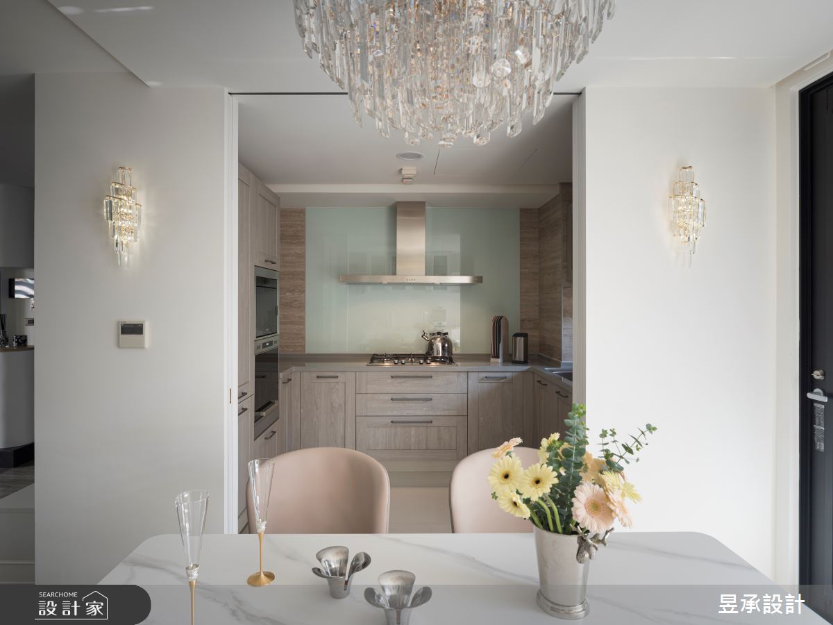 昱承室內裝修設計以大理石、灰鏡、鐵件、大圖輸出、疏棉玻璃、秋香木皮染色的搭配應用,呈現現代風居家氛圍,將此間61坪、三房、單層、新成屋(5年以下)打造成舒適愜意的家庭空間,完成2位大人、2位小孩全家人的夢想之居。