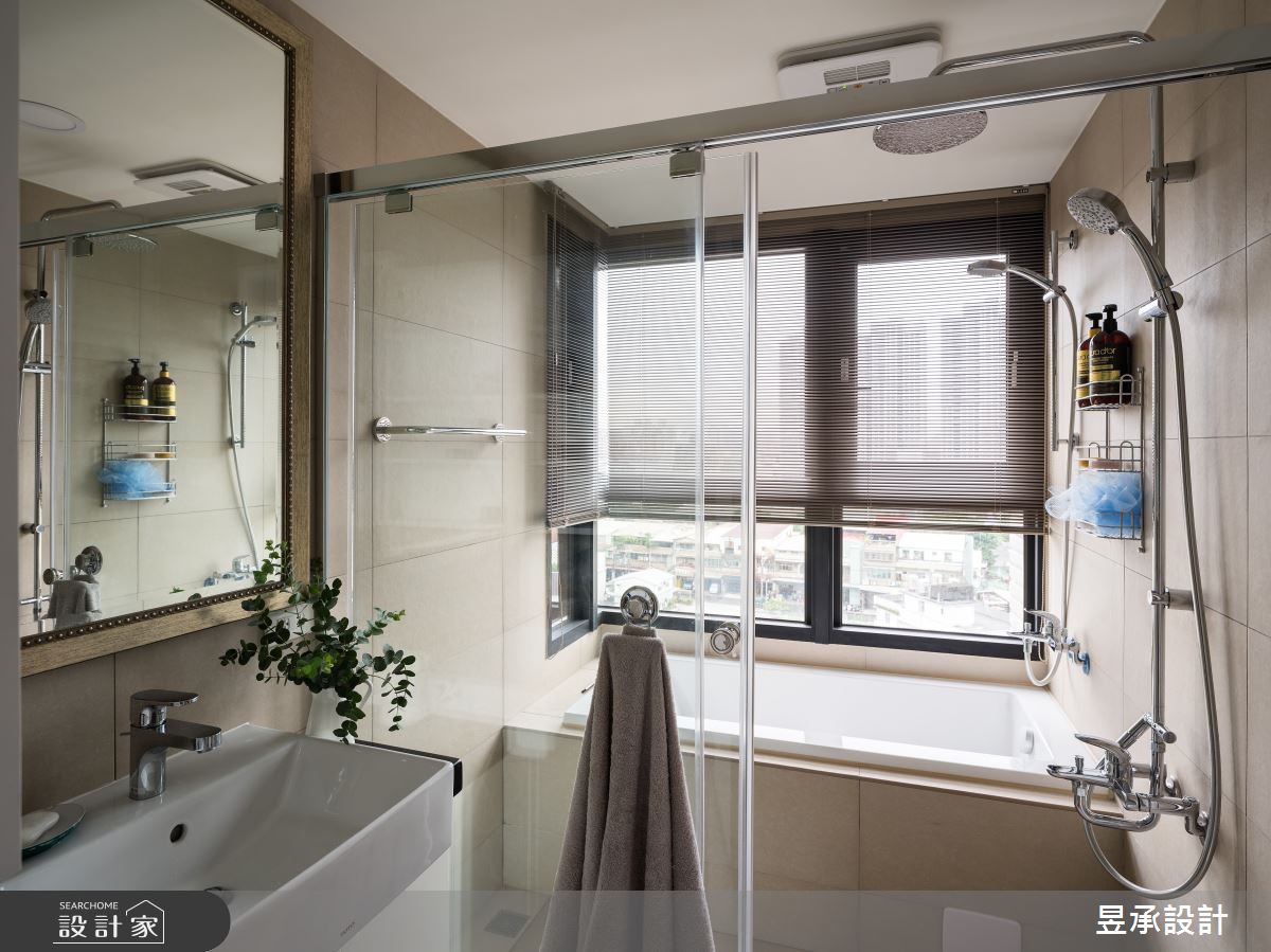 本案為昱承設計的47坪美式風新成屋(5年以下)設計作品,格局為單層三房的居住空間。居住成員包含2位大人。全室建材的搭配,應用乳膠漆、壁紙、人字貼超耐磨木地板、鐵件、木作貼皮、木百葉、噴漆、高亮釉地磚、金屬壁磚、夾紗玻璃,展現華麗中帶著溫馨的居家氛圍。
