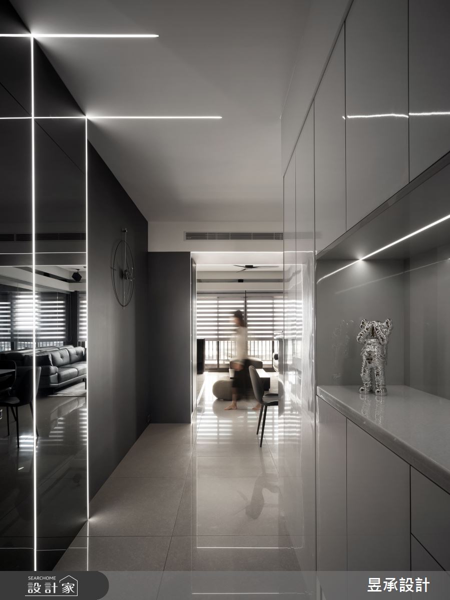 由昱承設計精心規劃的56坪四房住宅空間,家庭成員一共有2位大人、1位小孩。因應屋主需求,設計師運用工業風作為主軸,搭配乳膠漆、六角磚/蜂巢磚、壁紙、文化石、超耐磨木地板、鐵件、灰鏡、木作貼皮、系統板材、木百葉、軌道燈、繃布、清水磨,打造全家人的夢想家居。