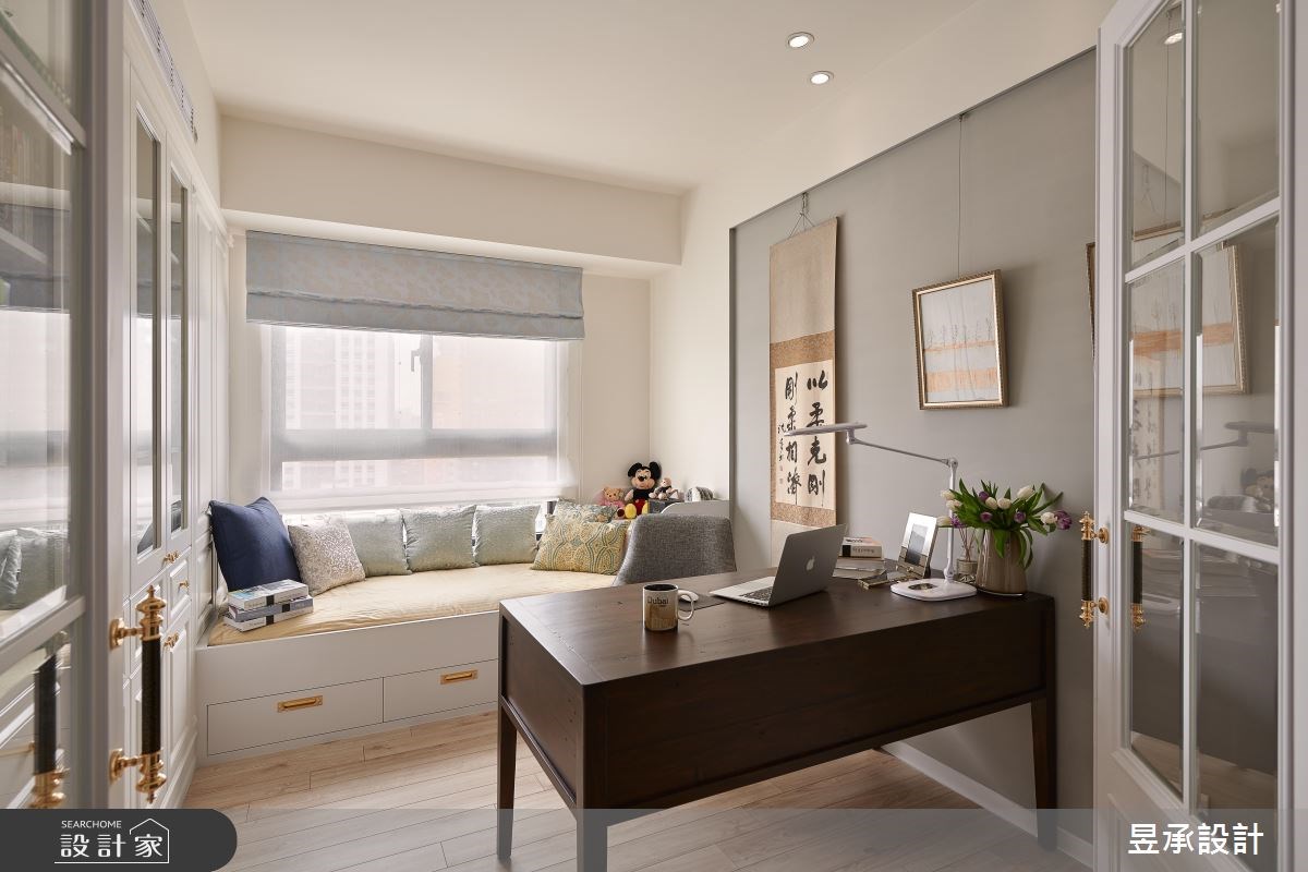 為了讓親愛的家人能在舒適的空間裡共享生活,大姐買下了4房的預售屋後,找來昱承設計操刀整體居家環境。歷經三年多的溝通、設計到交屋,過程中也融入設計師的用心與一家人的情感交流,最終以輕美式的恬靜、柔美樣貌,以及充滿故事性的醞釀,形塑三代同堂的溫馨宅居。 公領域裡以白、籐色調為基底,延續美式語彙的設計細節,局部以簡約的線板描繪層次,營造出柔和的室內氛圍,再藉由跳色牆面安排,還有優雅質感的家具、設計感家飾,別具雅緻的美式浪漫躍然眼前。潔白的電視牆體,一旁結合虛實相間的格子狀收納櫃,不僅鋪敘美式的動人情懷,更滿足家的實用機能;餐廳主體牆刷上綠色調,回字型線條串連其中,上下分別以House 、Dream圖騰妝點,刻劃出童趣與溫馨氣息,讓踏進空間的家人們隨即卸下一身倦意;電視牆的後方為多功能休閒室,以美式經典格子拉門界定領域,讓戶外的採光充沛引入餐廳區,增添視覺光采! 小編的最愛 大面採光替公領域形塑敞朗明亮的光景,乾淨、簡約的色調與線條描繪下,搭佐經典家具的擺設安排,與風格家飾的點綴,創造出感動人心的暖調空間。