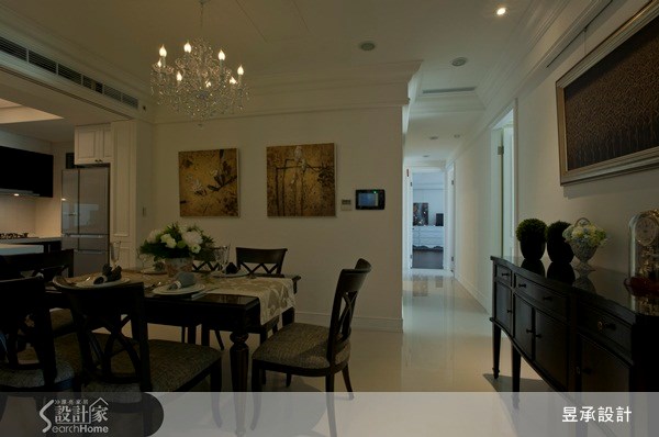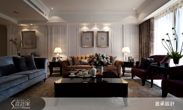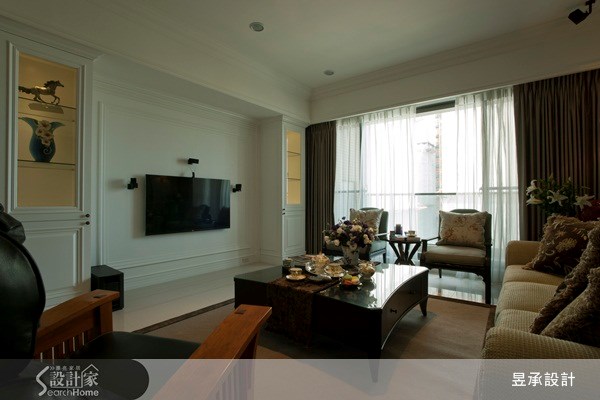 這個實內空間有88坪的全新電梯大樓華廈,因為女主人喜愛美式古典風格,在網路世界中眾裡尋它找到了昱承設計,喜歡內斂有質感的設計手法,將新家完全交付設計師手中。原有空間十分開敞,在生活動線及格局安排上遊刃有餘,唯建商原配置的胡桃木門扇,與女主人喜愛的風格不合。空間規劃是4房2廳,在格局不變的原則下,為展現道地美式古典精神,設計師大刀闊斧將屋內原有的門框和門扇更換,泥作切除門框上緣部份,提昇門框高度,使空間風格更為一致外,也讓空間的視覺基準線持於同一水平。此外,由於室內空間大、居住人口簡單,公共空間的規劃重點在於細微處的收與放,展示櫃與儲藏室結合電視主牆的設計,不讓過多櫃體與隔間,破壞公共空間的動線與視覺寬度,同時將琴房隱藏在玄關與餐廳之間,這即是”收”。書房採完全清透的玻璃配搭壁板及切割線條作隔間,增加空間視感層次,這就是”放”。而臥室則著重在收納,所有收納櫃體皆貼牆設計,在線板、壁板妝點下,充份展現出既開朗又優美的居家氛圍。主要建材:實木線板、強化玻璃、低甲酫木料建材、無毒環保漆、高級進口壁紙及窗簾布。裝修費用:250萬。