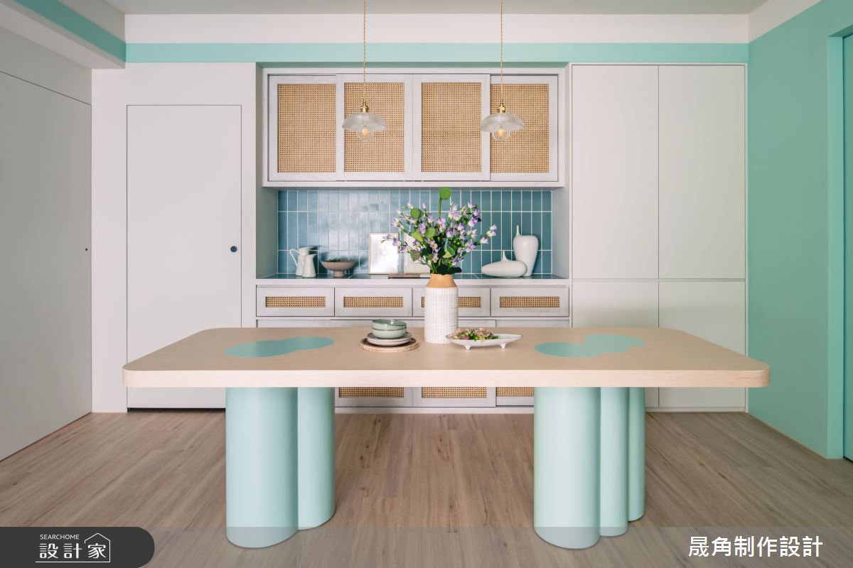 由晟角制作設計精心規劃的43坪三房住宅空間,家庭成員一共有2位大人、2位小孩。因應屋主需求,設計師運用美式風作為主軸,搭配乳膠漆、花磚、壁紙、超耐磨木地板、烤漆、系統板材、大理石、磁磚、繃布、線板,打造全家人的夢想家居。