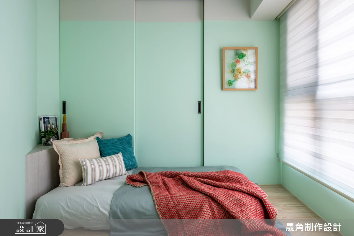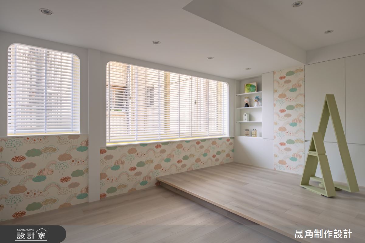 由晟角制作設計精心規劃的36坪三房住宅空間,家庭成員一共有1位大人、2位小孩。因應屋主需求,設計師運用北歐風作為主軸,搭配乳膠漆、六角磚/蜂巢磚、木地板、木作貼皮、烤漆、木百葉、人造石、線板,打造全家人的夢想家居。