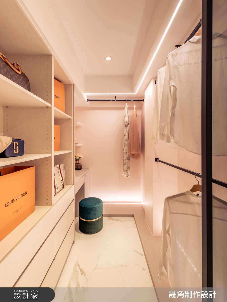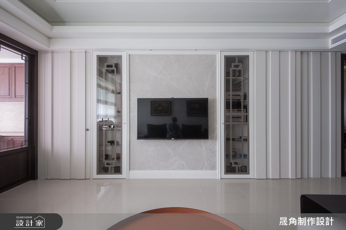 設計師為準備退休的夫妻 2 人量身打造郊區慢活宅,滿足含飴弄孫、宴客之便與大量收納機能的需求。以「輕中式」概念為主軸,結合民初西式設計,在 52 坪宅邸內打造優雅東方風格。 屋主夫妻鍾情於中式家具,並擁有為數可觀的中式收藏,但不喜過度刻板仿舊,因此設計師融合西方簡約,並保留東方的細膩典麗。玄關處擺設一架石材雕刻屏風,表現水墨畫的意象,刻有花鳥的屏風與入門處殷紅色矮櫃上的金色牡丹,皆象徵吉祥與豐足的內涵,彷彿守護著家門。設計師在本案大量使用隱藏式設計,將門片隱於線條中,包含客廳主牆兩側的主臥與廚房門,所有櫃體皆設置隱藏式把手,讓視覺感受簡潔俐落。因應屋主宴客需求,設計師規劃可容納 8 ~ 12 人的餐廳,開放式屏風與拱門造型搭配金質弧形天花,平衡實木長桌的空間重量。利用中式折門作為客廳與書房的分野,將窗邊地樑改為臥榻功能,並設置可移動書桌,讓機能性發揮至最大。主臥包含一間小而美的更衣間,利用仿床頭收納櫃結合梳妝台的設計,抹除床頭大樑的風水忌諱,佐以可觀覽群景的優良衛浴,為屋主提供最高品質的退休生活。 小編的最愛 看似簡潔的外觀下,其中蘊藏著許多可能,設計師認為:「就像中國水墨畫,單純留白的表象,皆暗諭著慢活自在的內涵」,同時於此符合屋主夫妻對未來退休生活的希冀。