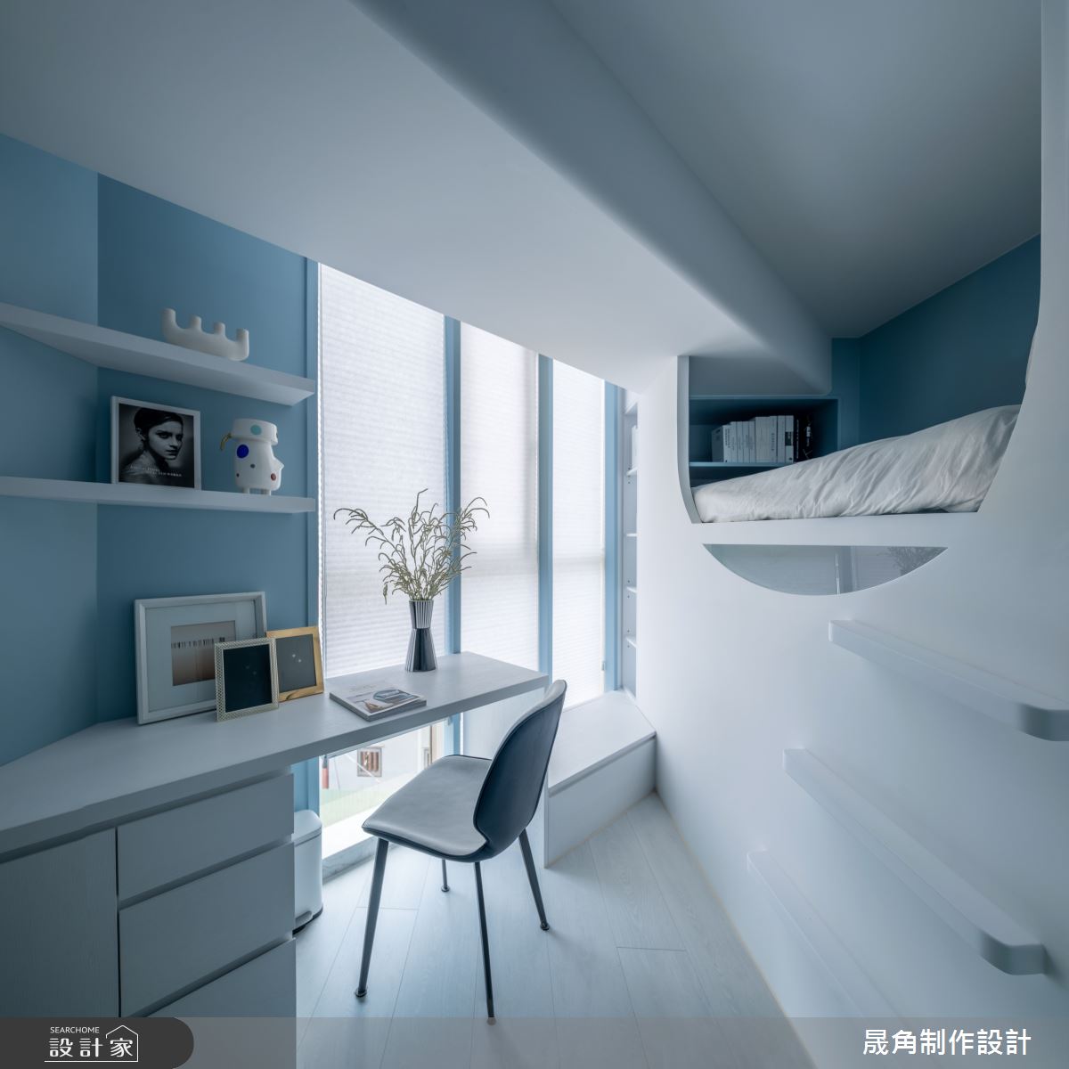 設計師神乎其技,將一幢屋齡超過 40 年的老式透天厝,幻化以多層次藍為主軸的居家空間,以豐富的色彩配置混搭各式風格元素,讓百坪大宅重現生機活力!從外觀設計開始,設計師即為透天厝營造與眾不同的繽紛感受,蔚藍牆面搭配拱型窗與雕花設計,顯現浪漫的法式風格。 進入公領域空間,牆面與格狀門片漆上嬰兒粉藍,取代外觀的鮮豔明亮,轉化為含蓄溫柔的氛圍。餐桌上方懸掛的水晶吊燈,與嫩綠色桌面及帶著優雅弧度的桌椅設計,延續了法式情調。而客廳與廚房則使用現代化十足的元素,如軌道照明、俐落鏡面與天窗設計,形成時髦而復古的歐式風格。拾級而上,來到公私領域的交界處,湖水綠及寶石藍的色調,搭配線條明確的樓梯與大量原木設計,成為穠纖合度的混搭風景。主臥充滿藝術性,利用鮮黃色牆面為主視覺,並以大理石紋路櫃面營造有趣的衝突美感;主臥衛浴利用六角、亮面與馬賽克磚拼貼而成,配上吊燈,有著復古卻不落窠臼的氣息。 小編的最愛 設計師特意保留了頂樓空間,留下原先的老式地坪與水泥粉光,與尖屋頂及投射燈光產生現代與傳統交融的閣樓意象。