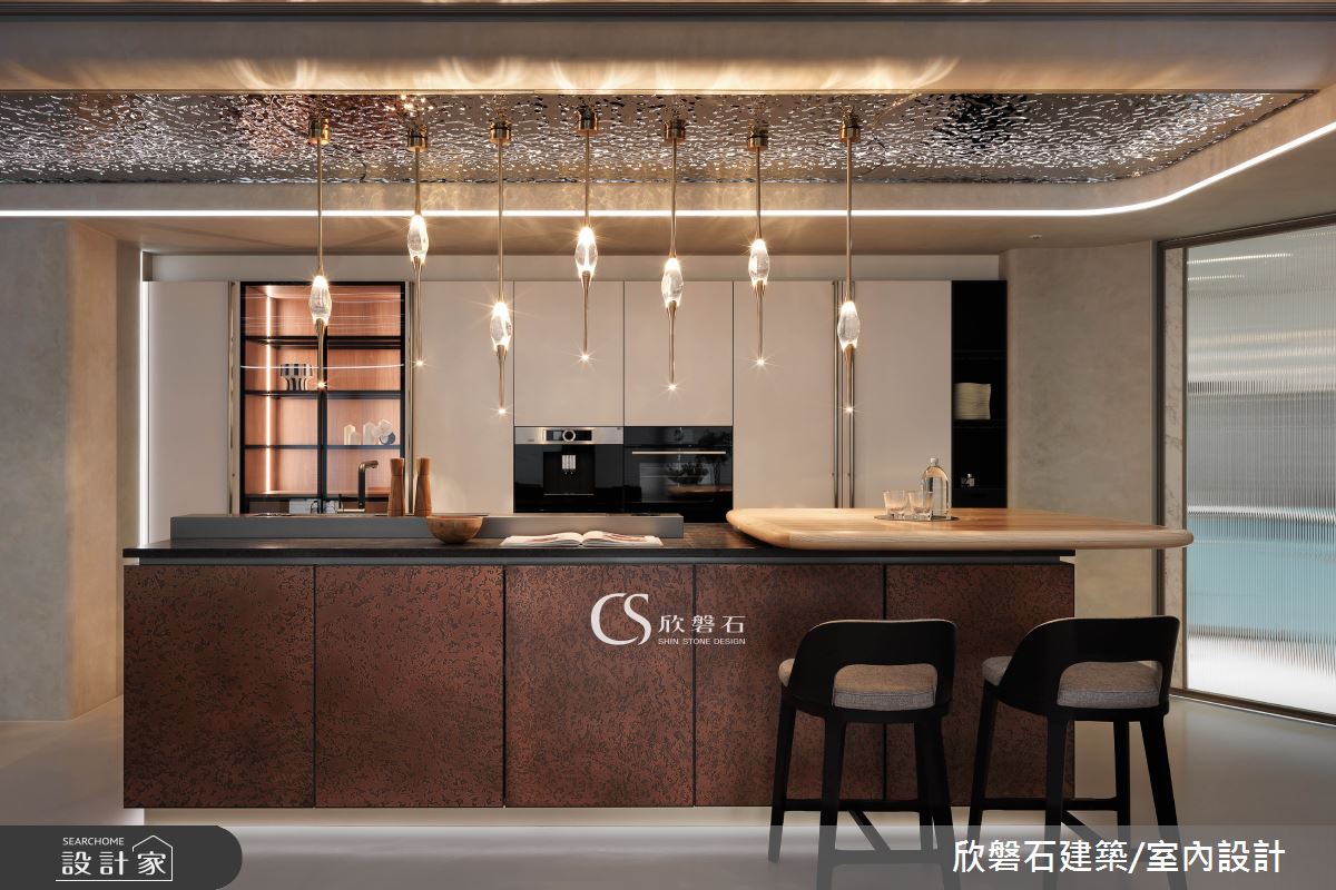 由欣磐石建築.空間規劃精心規劃的67坪三房住宅空間,家庭成員一共有4位大人。因應屋主需求,設計師運用現代風作為主軸,搭配壁紙、超耐磨木地板、鐵件、鍍鈦金屬、烤漆、鋼刷木皮、系統板材、石材、石皮、玻璃、薄板磚、耐麗石,打造全家人的夢想家居。