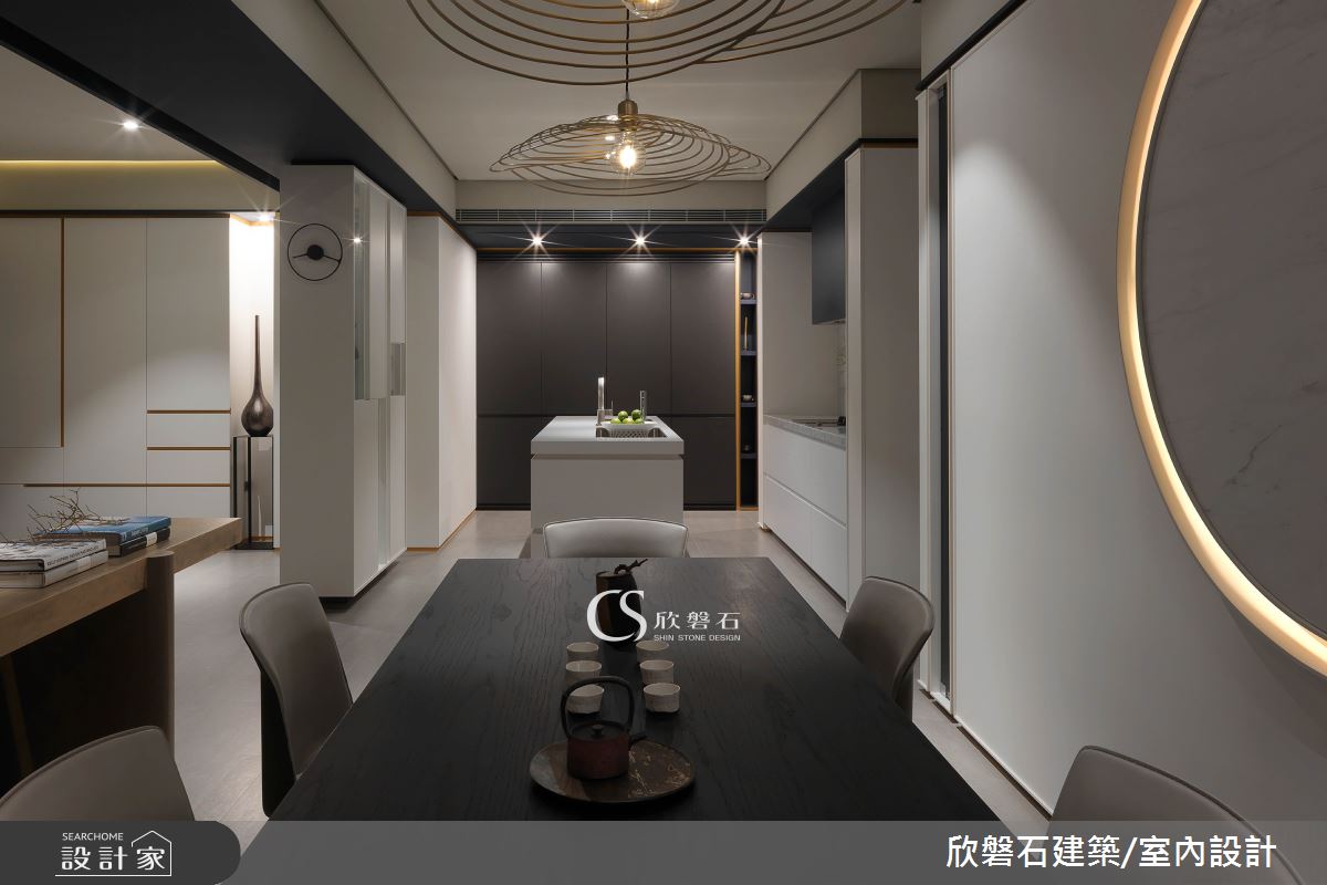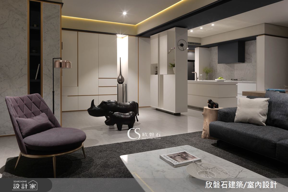 從事設計產業的屋主,對於日常生活的空間,也具有一定的美感和質感的要求,設計師為屋主所打造的 40 坪現代風居所,沒有刻意、浮誇的造型設計,以簡潔、優雅為主軸,搭配石材、金屬、燈光等元素,凸顯出優雅細膩的人文品味。 格局規劃上以開放、明亮為主,構畫流暢的生活動線,入口處安置了線條俐落的櫃體,減去把手設計,輔以局部鏤空設計,賦予簡約美感,也滿足了小家庭生活中必備的收納機能。整面的大理石牆面,以及進口磚所鋪敘的地坪,利用不同的材質,讓留白有了更加豐富的層次。軟件陳設則選擇靛色沙發、深木色的餐桌,形成沉靜的對比,並加入金屬質感的元素和細節處的金屬漆面收邊,點出了精緻的內涵,也帶來視覺上的亮點。用餐區利用燈光和銀狐大理石材質,讓餐廳主牆面彷彿掛上一幅圓融的藝術品般,為生活挹注優雅人文氣質。 小編的最愛 走進這處空間,簡潔、沉靜的色調,讓時間彷彿也慢了下來,設計師將收納空間隱形收整,讓空間更顯乾淨俐落,也多了值得細細品味的生活內涵。