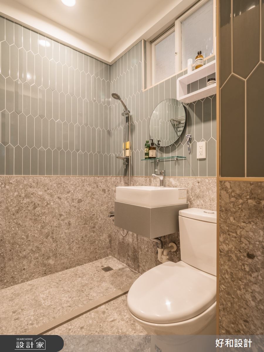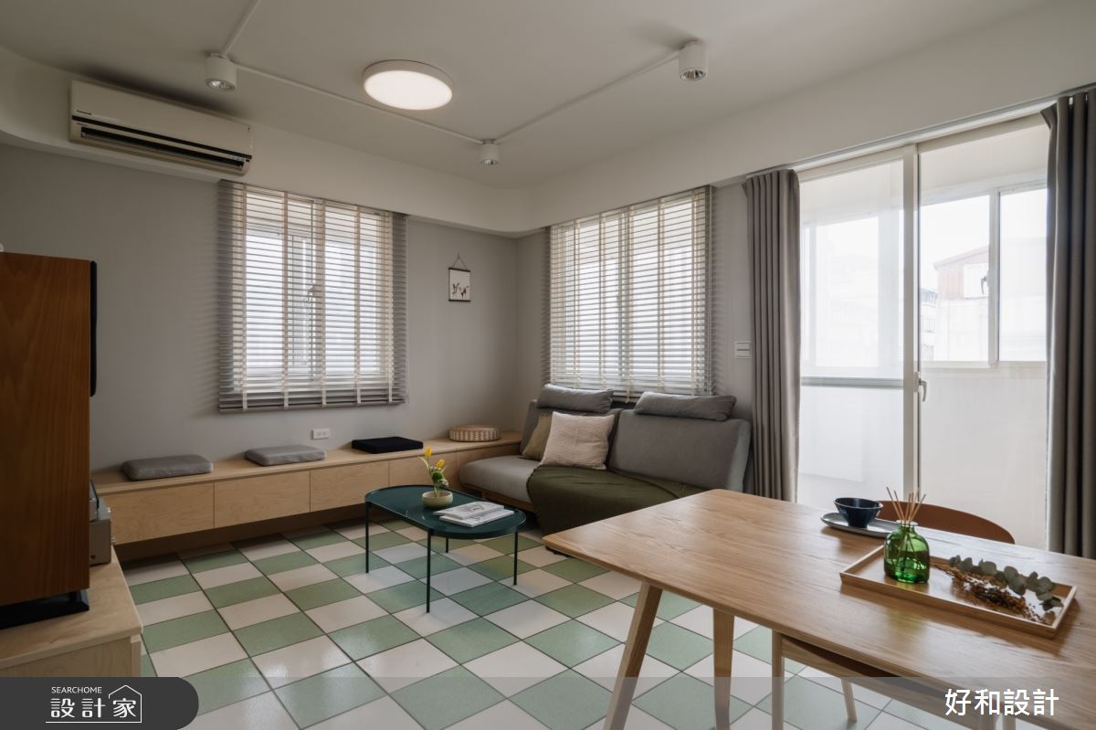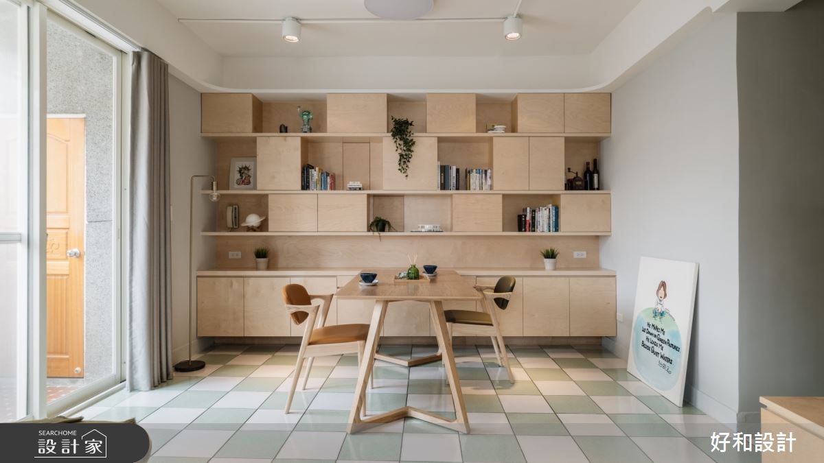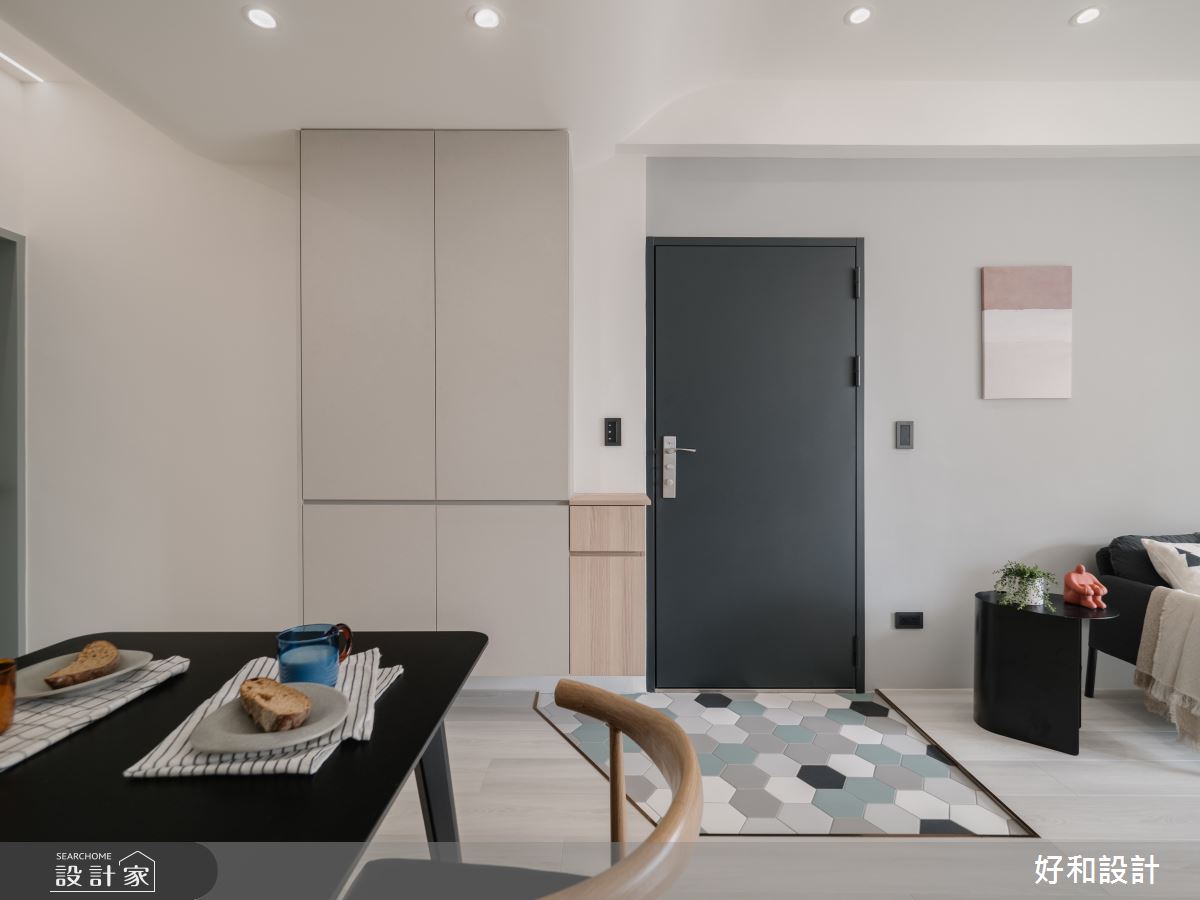 來自好和設計的20坪混搭風住宅案,屋主一家人共有2位大人,是一間單層老屋(41~50年)的三房格局,設計師藉由建材以乳膠漆、鐵道磚、六角磚/蜂巢磚、花磚、超耐磨木地板、鐵件、木作貼皮、烤漆、木百葉、人造石、復古花玻璃的搭配應用,實現一家人的理想生活。