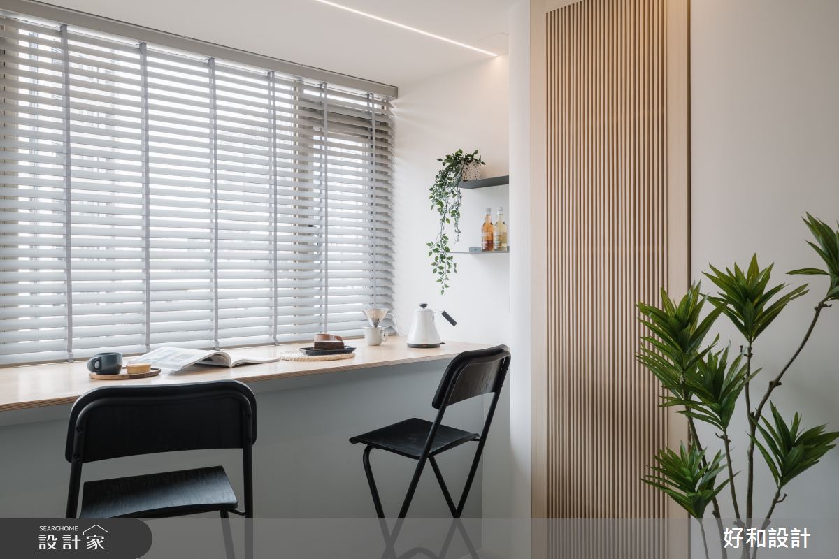由好和設計精心規劃的26坪兩房住宅空間,家庭成員一共有2位大人。因應屋主需求,設計師運用北歐風作為主軸,搭配乳膠漆、鐵道磚、水泥漆、超耐磨木地板、鐵件、烤玻、木作貼皮、木百葉、人造石、軌道燈、藝術塗料,打造全家人的夢想家居。