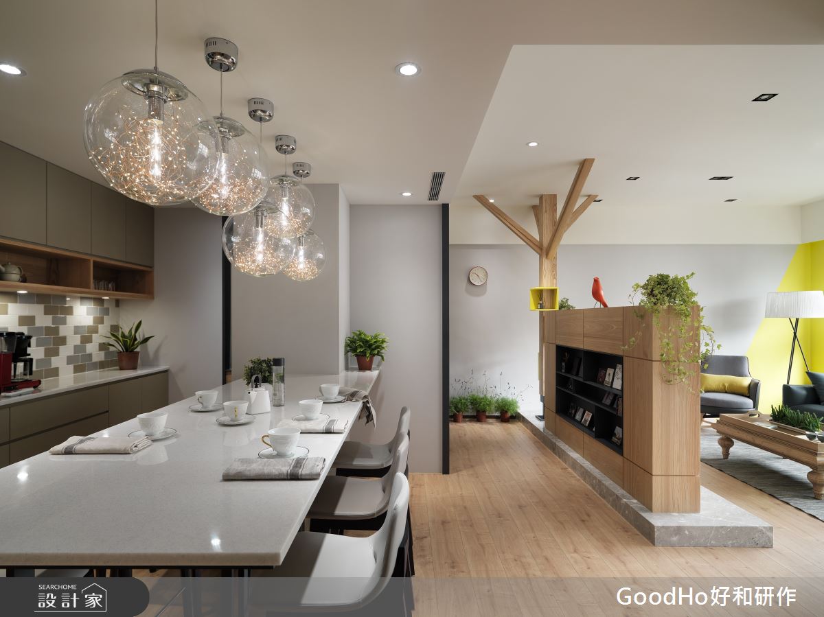 由GoodHo好和研作精心規劃的40坪四房住宅空間,家庭成員一共有2位大人、1位小孩。因應屋主需求,設計師運用現代風作為主軸,搭配栓木實木板、黑鐵烤漆、長虹玻璃、KENORO卡扣式木地板,打造全家人的夢想家居。
