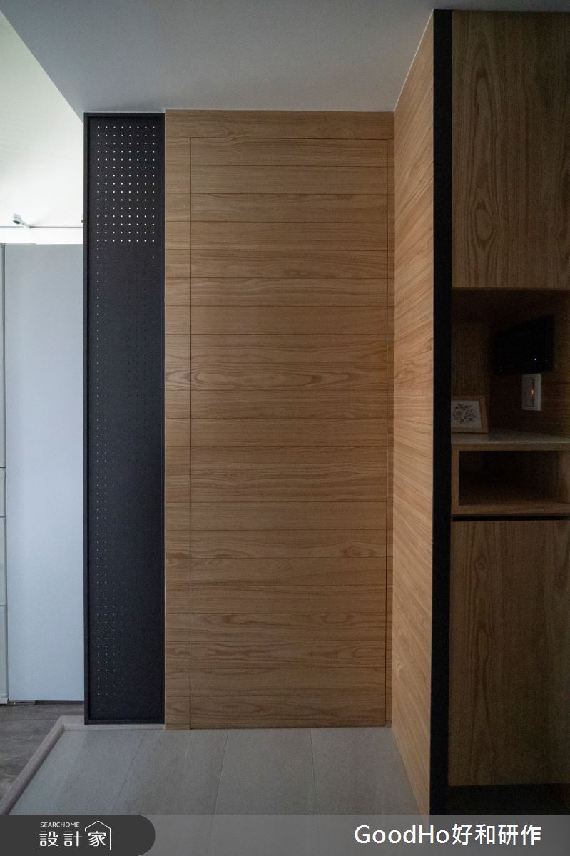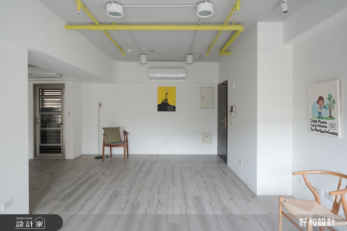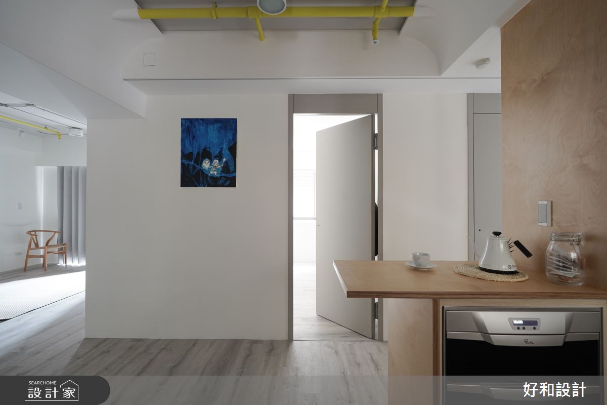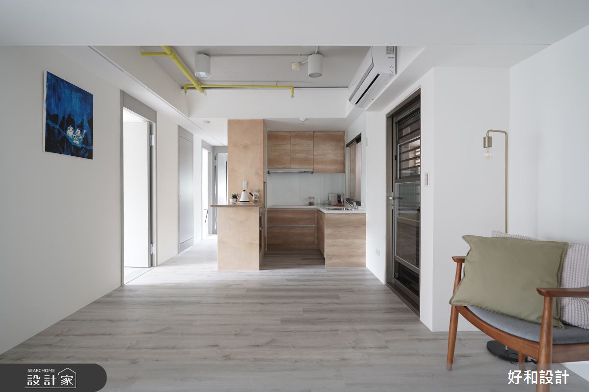 來自好和設計的10.5坪現代風住宅案,屋主一家人共有1位大人,是一間單層新成屋(5年以下)的兩房格局,設計師藉由建材以乳膠漆、超耐磨木地板、鐵件、烤漆、系統板材、磁磚、木百葉、人造石、軌道燈、長虹玻璃的搭配應用,實現一家人的理想生活。