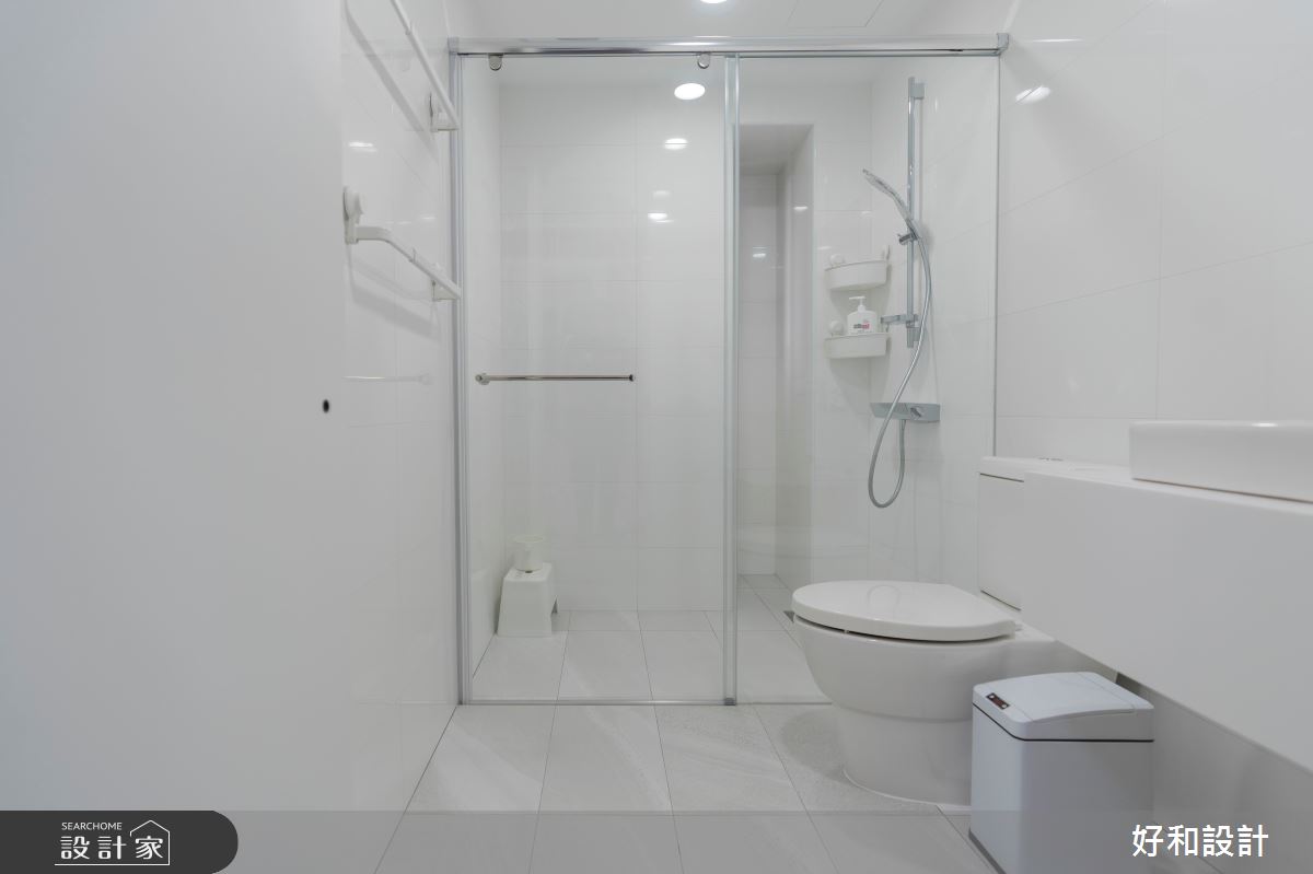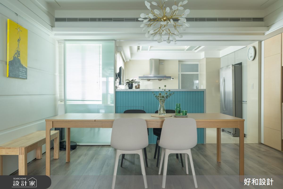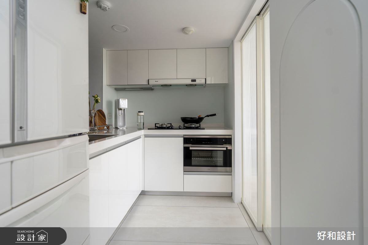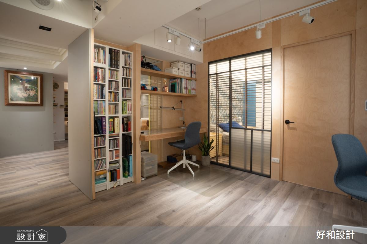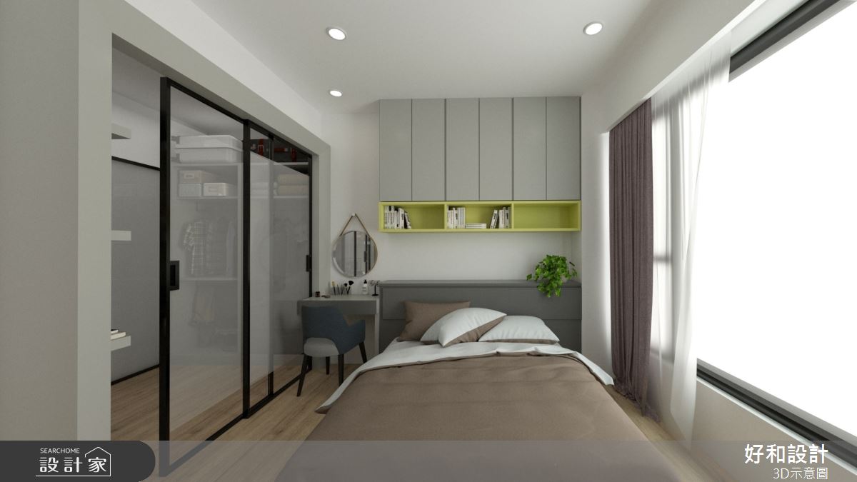 來自好和設計的10.5坪現代風住宅案,屋主一家人共有1位大人,是一間單層新成屋(5年以下)的兩房格局,設計師藉由建材以乳膠漆、超耐磨木地板、鐵件、烤漆、系統板材、磁磚、木百葉、人造石、軌道燈、長虹玻璃的搭配應用,實現一家人的理想生活。
