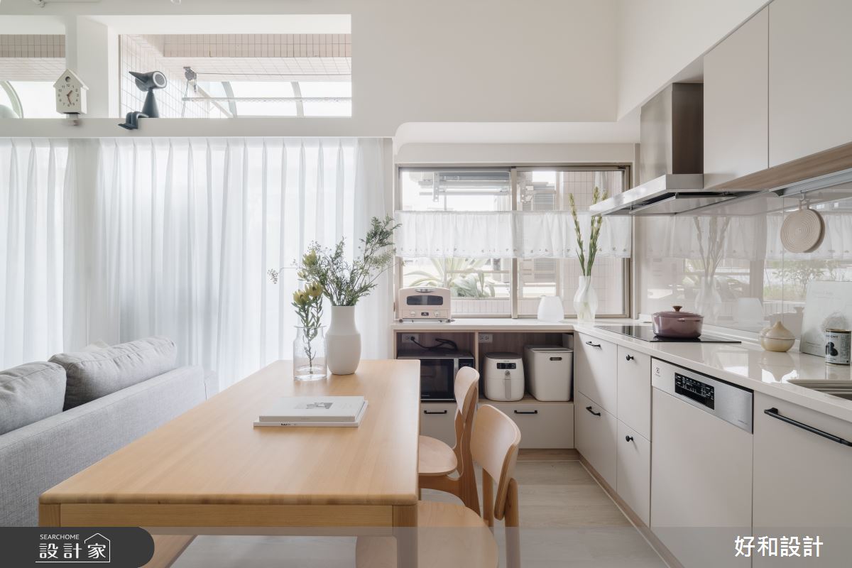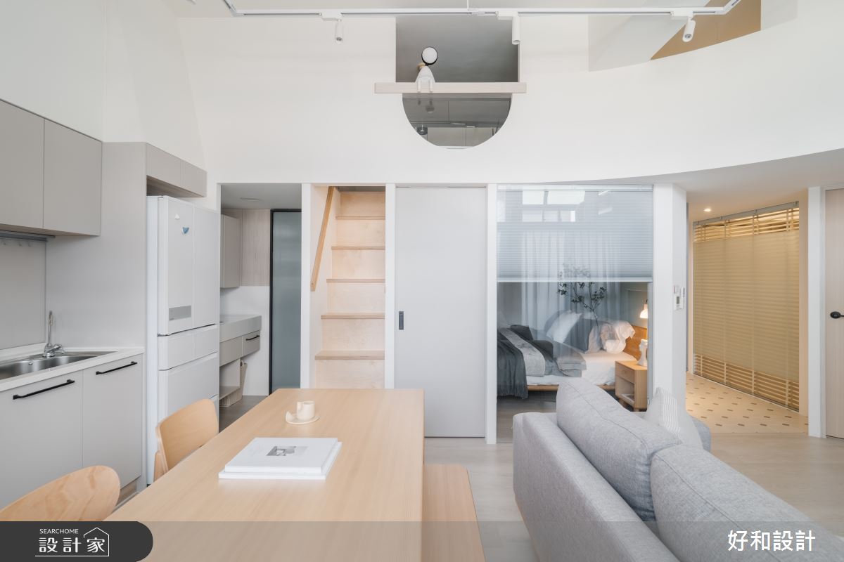 來自好和設計的15.5坪日式無印風住宅案,屋主一家人共有2位大人、2位小孩,是一間複層老屋(16~30年)的四房格局,設計師藉由建材以油漆、乳膠漆、鐵道磚、花磚、超耐磨木地板、鐵件、系統板材、木百葉、人造石、軌道燈、烤玻、玻璃貼膜、ikea家具、seed燈具、樺木夾板、KD環保皮板、藝術塗料的搭配應用,實現一家人的理想生活。