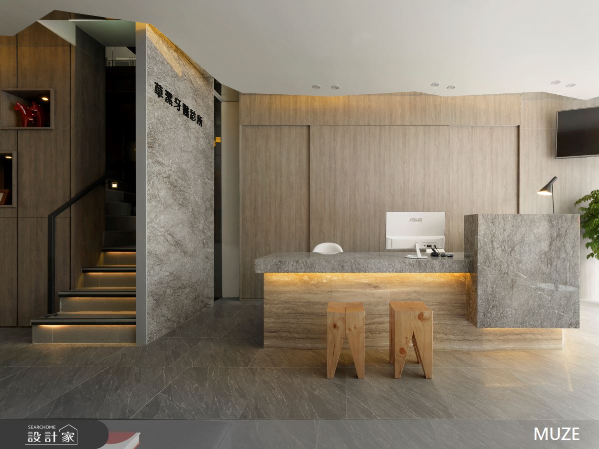 由MUZE 慕澤設計精心規劃的160坪商業空間,因應業主需求,設計師運用現代風作為主軸,搭配建材訂製鐵件、大理石、人造石、灰玻、灰鏡、木皮板、進口地磚、茶玻、茶鏡、仿洞石板、仿銀狐板,打造精緻品味的空間氛圍。