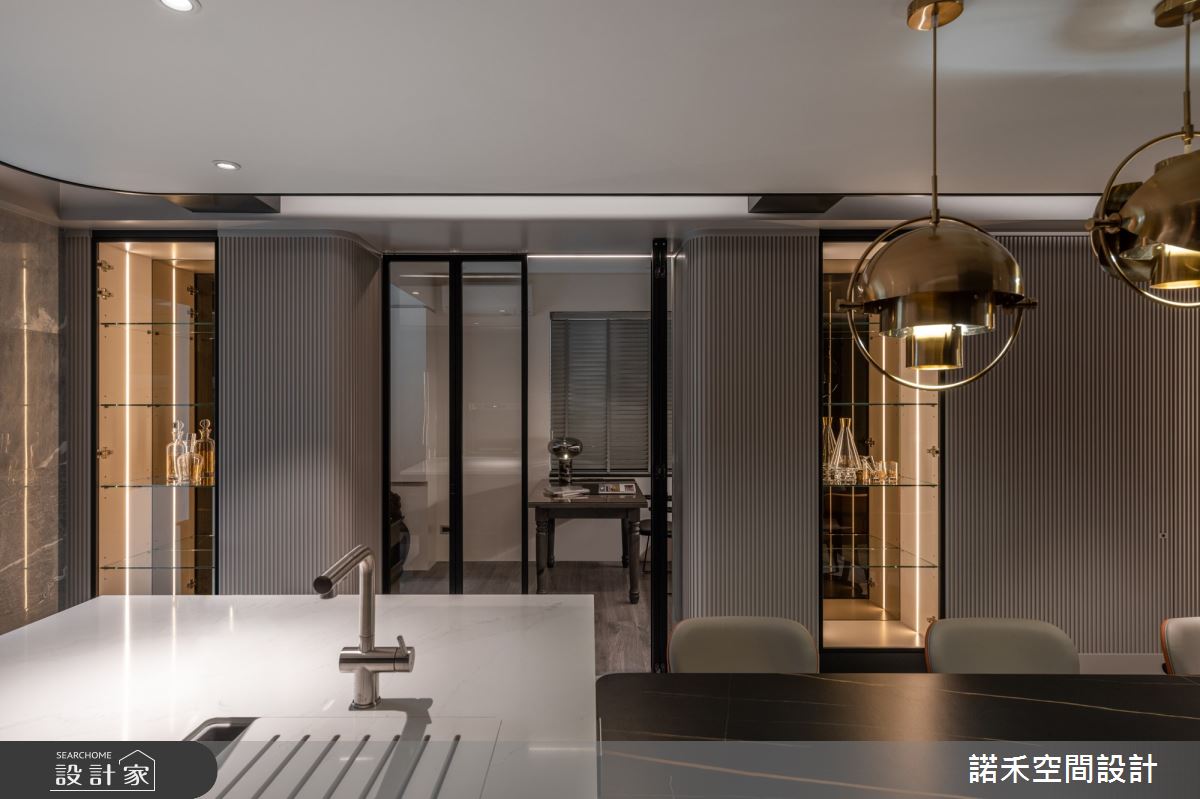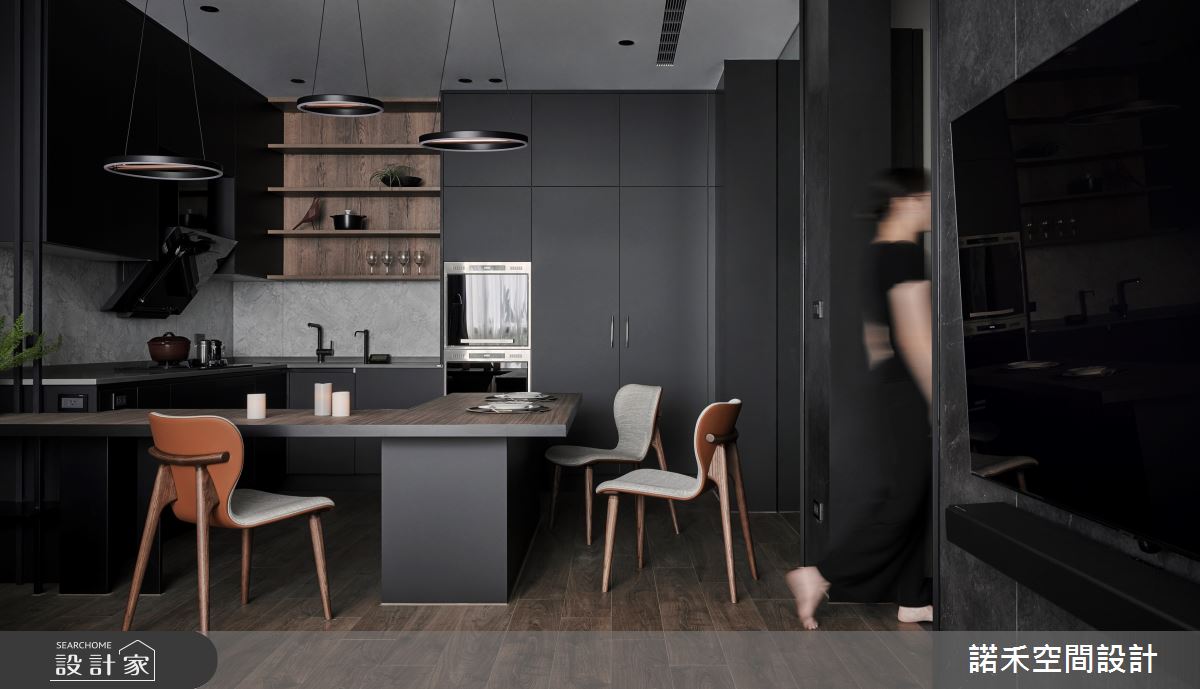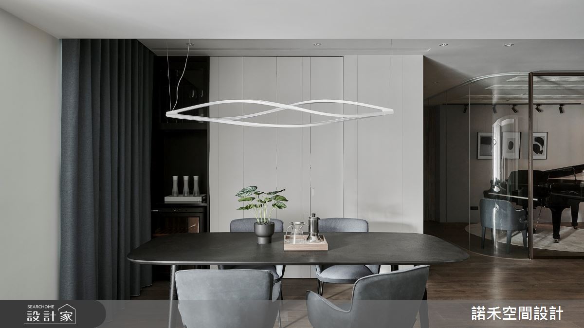 由諾禾空間設計 上碩設計精心規劃的58坪四房住宅空間,家庭成員一共有2位大人。因應屋主需求,設計師運用現代風作為主軸,搭配超耐磨木地板、鐵件、烤漆、特殊塗料、美耐板,打造全家人的夢想家居。