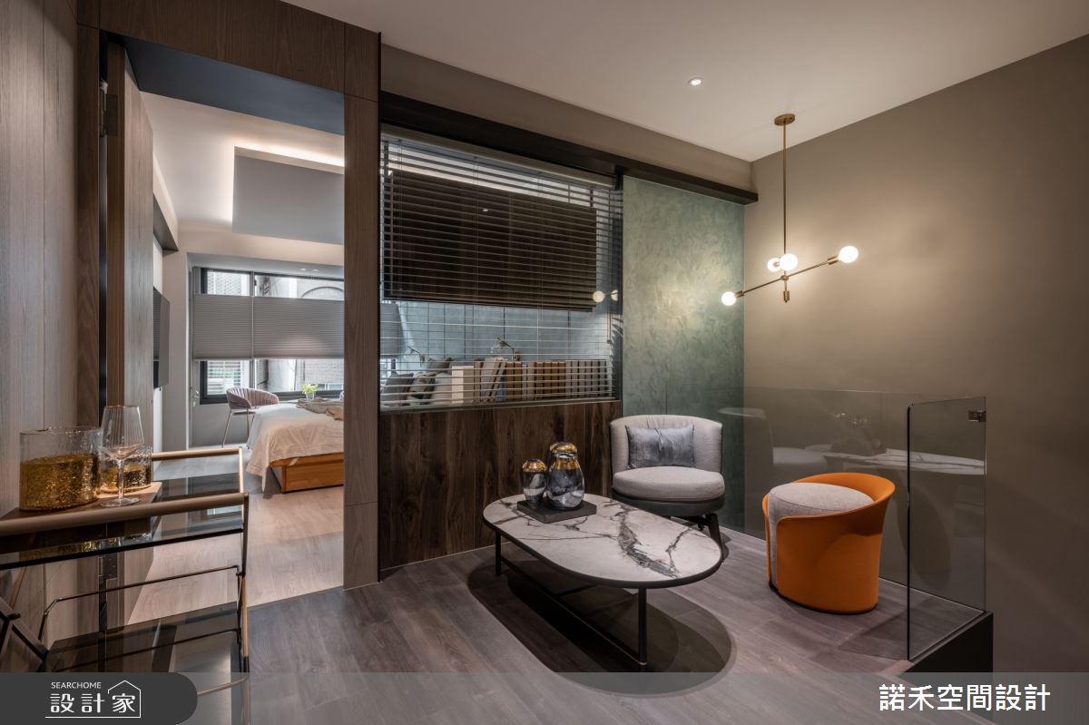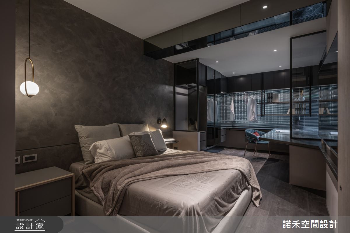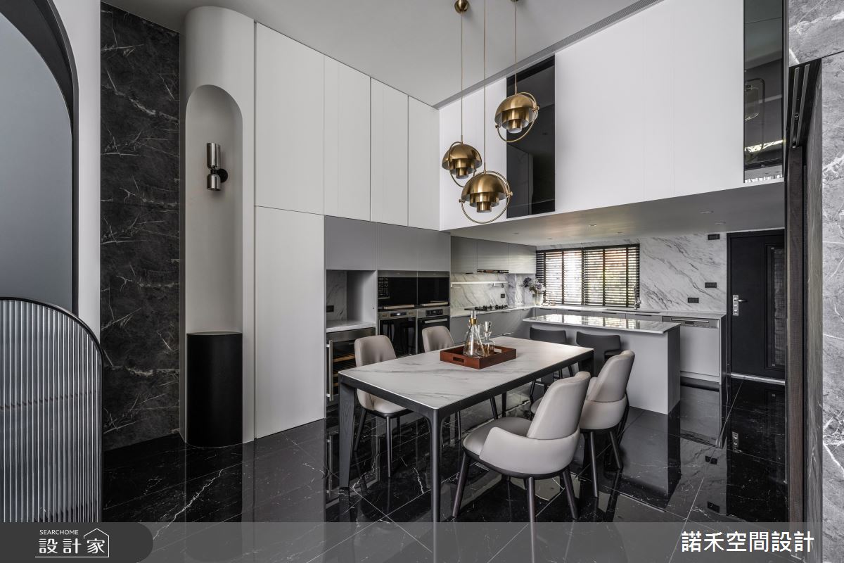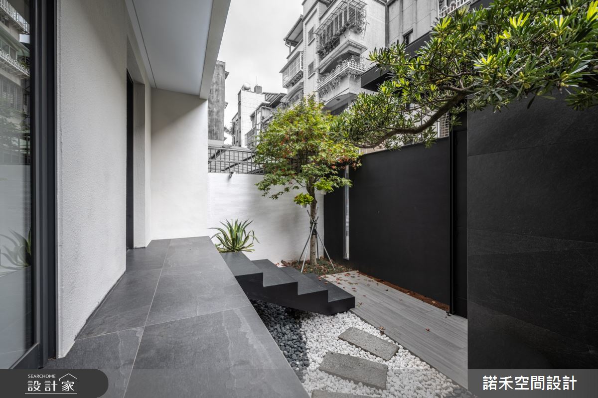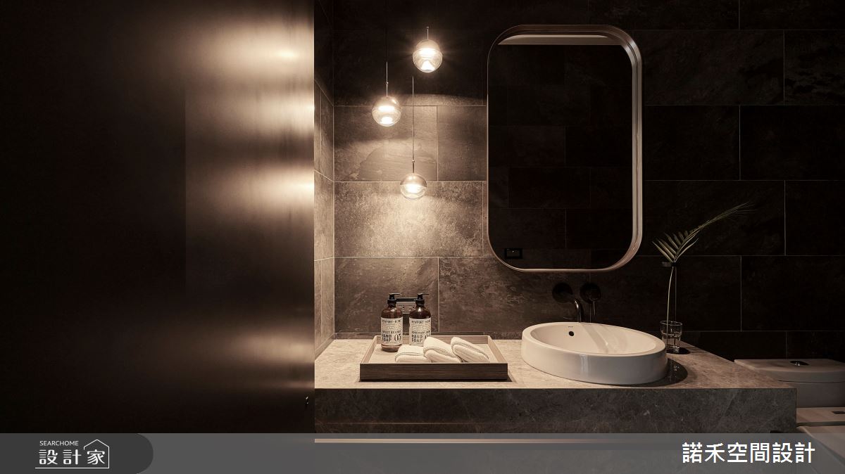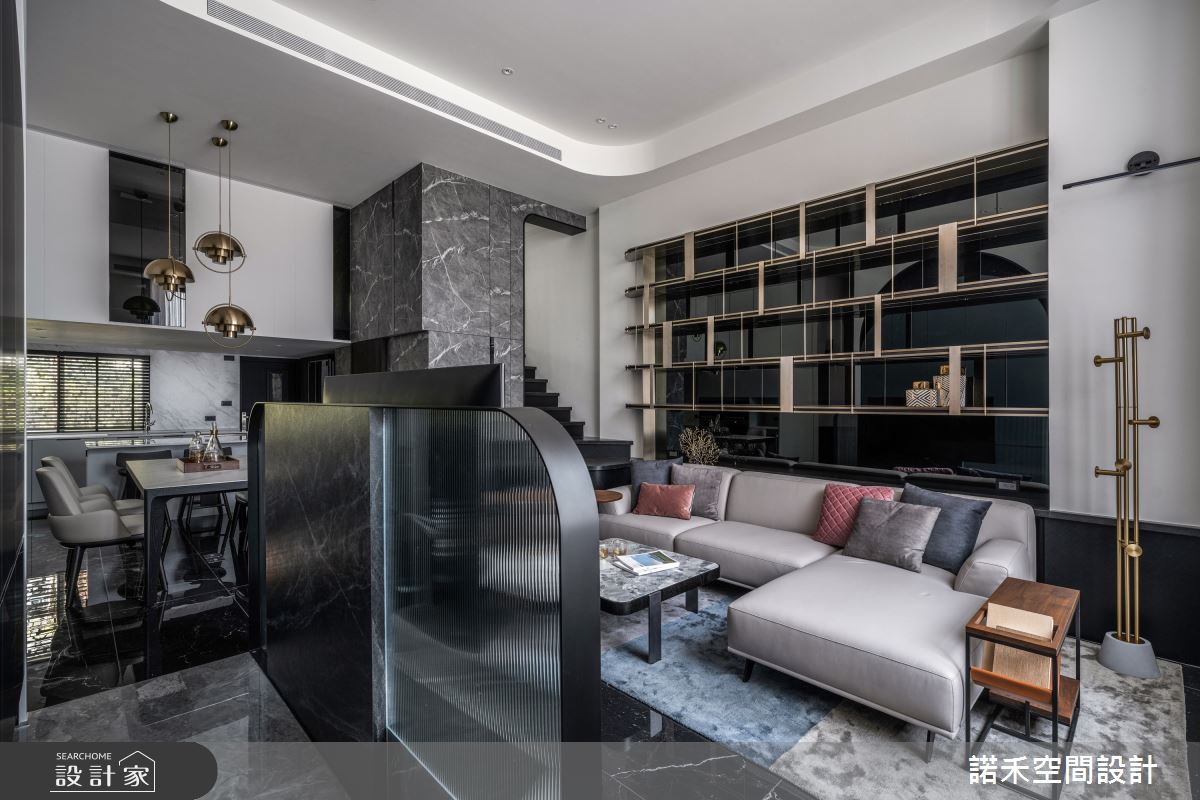 諾禾空間設計 上碩設計以石材、薄磚、金屬、鐵件、藝術塗料、噴漆的搭配應用,呈現現代風居家氛圍,將此間75坪、五房、複層、老屋(16~30年)打造成舒適愜意的家庭空間,完成2位大人、2位小孩全家人的夢想之居。