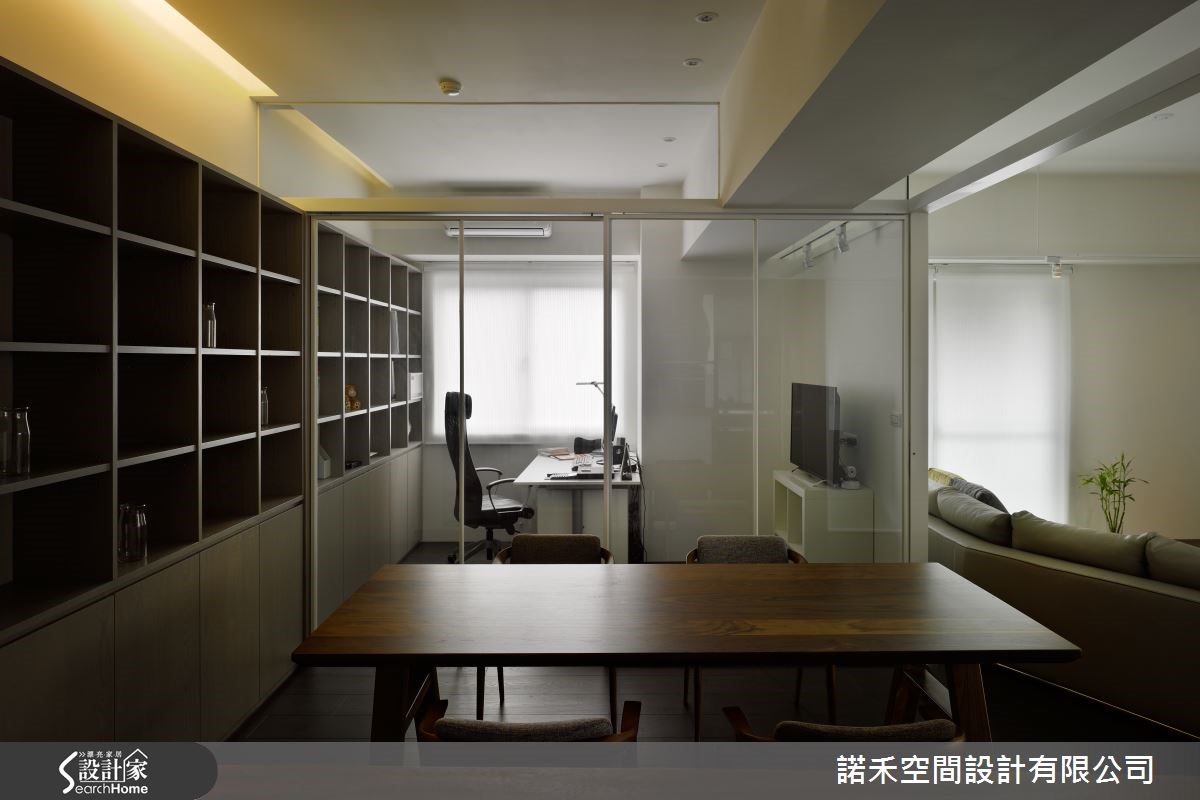 位於內湖的 35 坪空間,為屋主夫妻和孩子的共同居家,夫妻倆希望整體空間能看起來更寬闊但仍保有隱私,因此設計師便以「數寄屋造」的概念做為發想(數寄屋造指的是融入茶室風格的日式建築),打造一家三口的幸福居家,如此傳統的風格你能想像在現代裝修的詮釋下會進化成什麼模樣嗎?快跟著設計家的腳步一起一探究竟吧! 從踏入玄關的圖騰印花地面再到以耐磨木地板為主體的居家空間,呈現了些許對比的玩味,也利用地板來區隔空間。客廳與用餐區採開放式格局,讓整體範圍更加開闊,客廳領域的白色沙發搭配大片落地窗的光線撒入,再加上特殊造型的壁燈與 3 燈頭聚光燈輔助,光源充足外,其層次亦相當豐富。沒有過多的裝飾,手感溫潤的長型木桌為用餐區的主導,餐區兩邊分別為書房與餐廚空間,兩空間皆以玻璃拉門來取代一般隔間(家中許多獨立空間亦是採拉門設計),其靈感便是來自數寄屋造中常見的茶室拉門,利用玻璃的穿透性,使視覺上更顯遼闊,拉門的靈活性則是能一方面使空間保有隱私,也能根據使用者的喜好開放與其他空間融合,充分地達到屋主重視隱私且空間寬廣的兩大需求。臥室空間則展現了極簡、舒適的氛圍,屏除了一般的床頭櫃,以類似矮木的陳設作為取代,遠看亦像個藝術品,相當特別。衛浴設備採乾濕分離,保持非淋浴空間之乾燥,搭配玻璃與厚實的木門做為屏障,十足地自然愜意。 小編最愛 書房空間坐擁綠意景色與充足的日光照射,加上透亮的落地玻璃拉門,在家中一隅保有如此空間,即便是忙公事,彷彿也會因為這獨立空間所帶來的寧靜感而不那麼煩躁了吧!