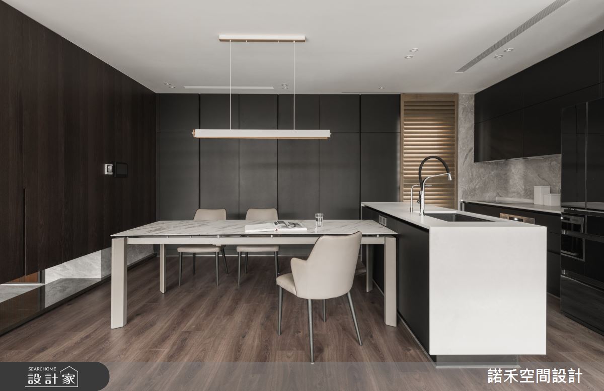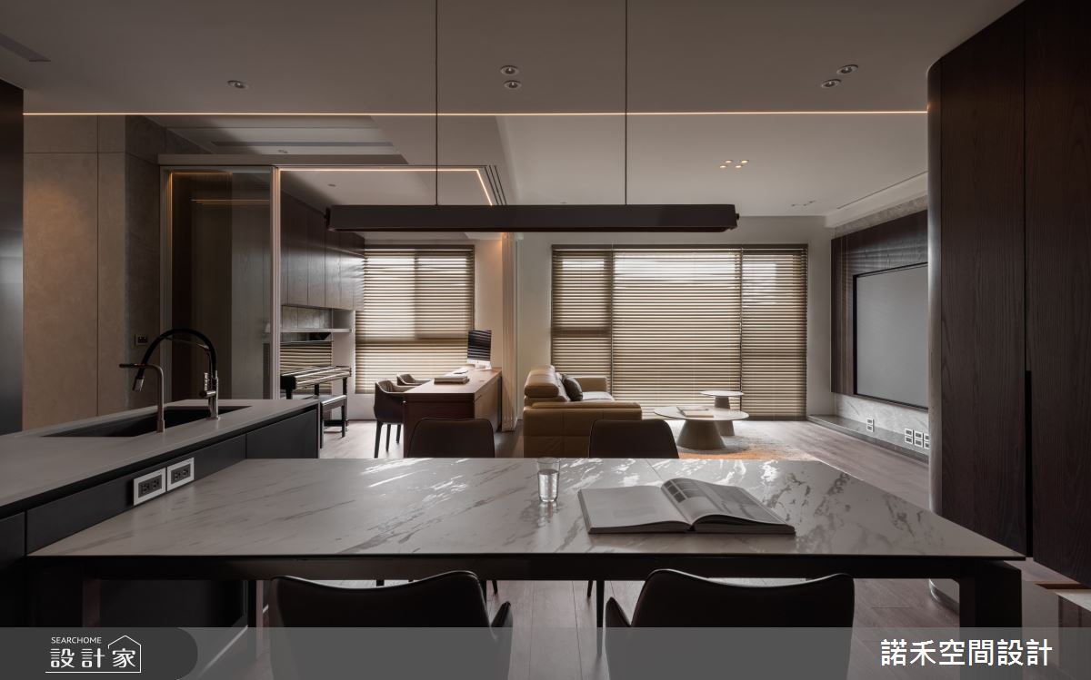 來自諾禾空間設計 上碩設計的35坪現代風住宅案,屋主一家人共有2位大人、2位小孩,是一間單層新成屋(5年以下)的四房格局,設計師藉由建材以鋼刷木皮、石材、藝術塗料、金屬、塗料的搭配應用,實現一家人的理想生活。