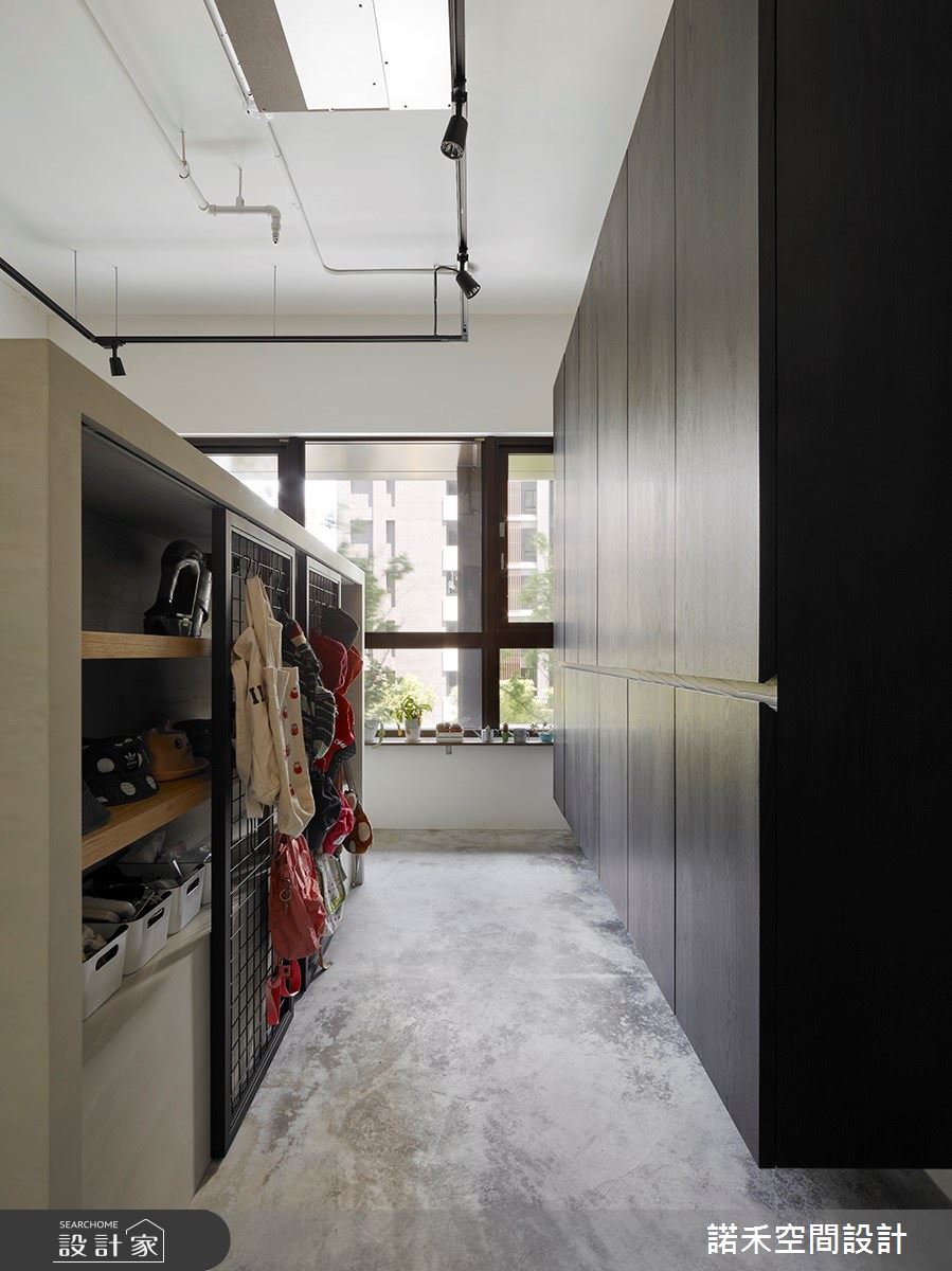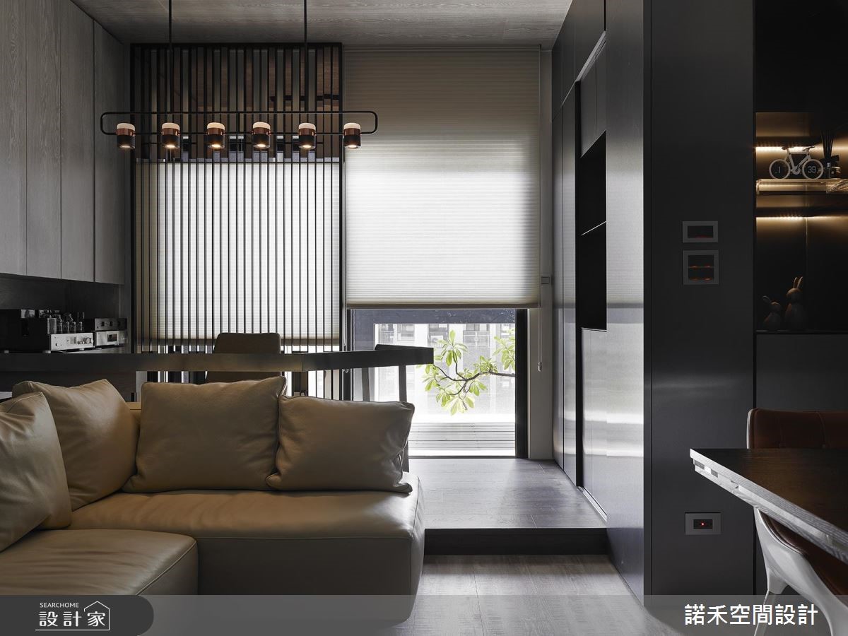 長期在異國打拼的遊子決定帶著成功的事業回台灣定居,諾禾設計試圖在對話中找尋屬於遊子的家鄉記憶,並連結旅居海外的生活習慣,在這個35坪的宅邸中完成了專屬屋主態度的自在生活。 空間中以層次相間的咖啡色系為主軸,一進門整片的鋼刷木皮從玄關延伸至客廳電視牆營造沈穩的氛圍,並在入口處以雙面櫃體提供收納,並區隔出玄關落塵區化解開放式公共場域的風水問題。天花利用帶狀光條與間接照明呈現多樣化的空間氛圍情境,並巧用玻璃摺疊門與茶玻屏風作為界定,讓視覺感到通透輕盈,而玄關通往廚房側運用大面積的櫃體則滿足生活上的收納需求。轉入私人領域,有別公共空間的大地色調,利用床頭的牆面做跳色,草綠色帶來活潑、青春氣息,衛浴有如飯店般選用玻璃門片引入自然採光,屋主也能在個人天地裡肆意遨遊。 小編的最愛 客廳電視牆僅用鋼刷木皮就營造出沉穩大器氛圍,也為空間迅速定調都會質感。