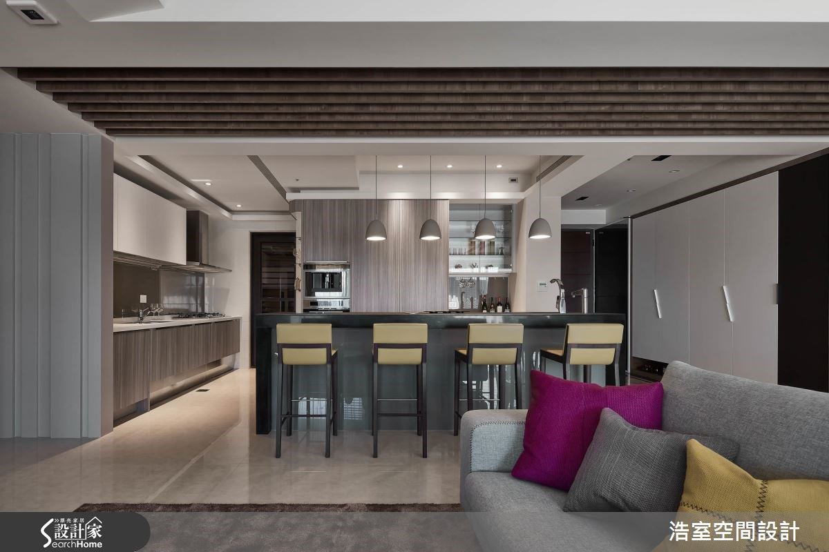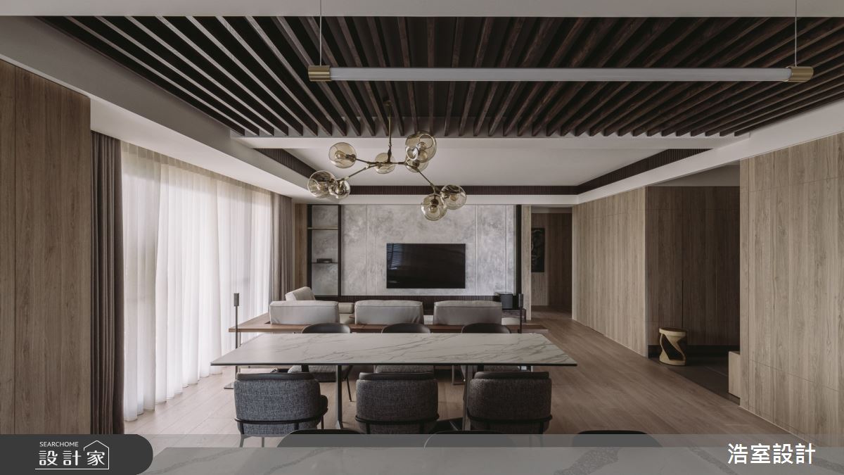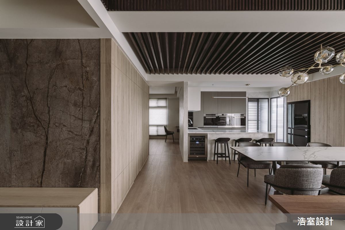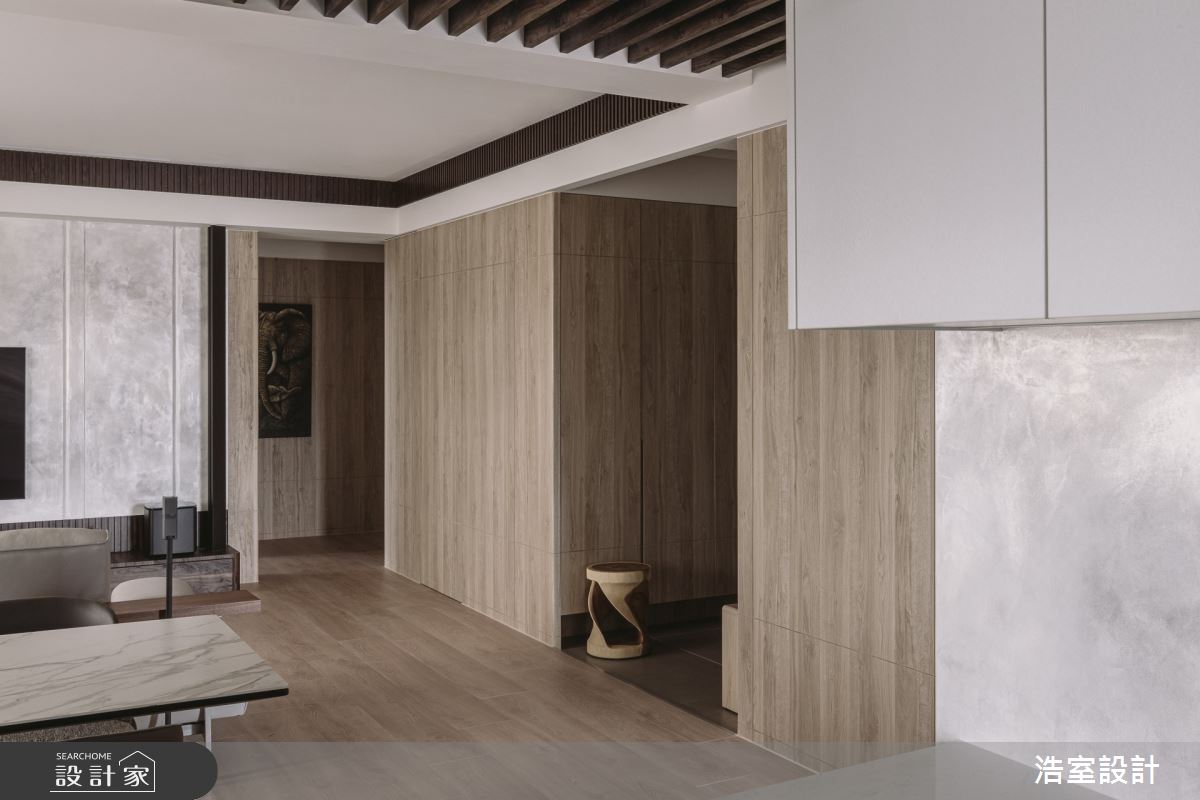 來自浩室設計的45坪休閒風住宅案,屋主一家人共有2位大人、2位小孩,是一間單層新成屋(5年以下)的四房格局,設計師藉由建材以超耐磨木地板、灰鏡、鍍鈦板、玻璃、石英石、噴漆、木皮的搭配應用,實現一家人的理想生活。