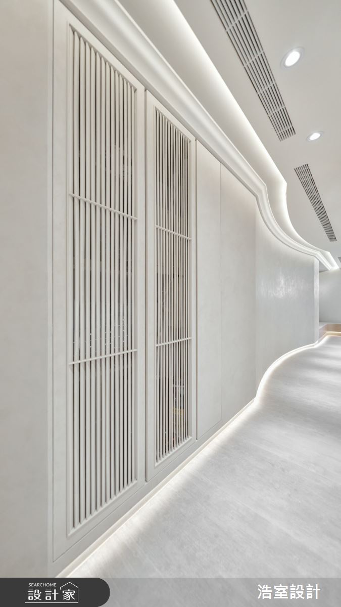 浩室設計以磁磚、塗料、木皮、油漆、系統櫃、木地板的搭配應用,呈現混搭風居家氛圍,將此間57坪、四房、單層、新成屋(5年以下)打造成舒適愜意的家庭空間,完成全家人的夢想之居。
