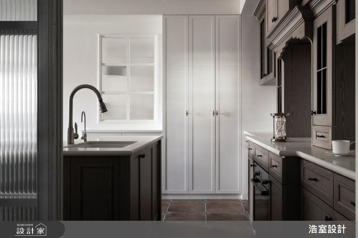 20年的舊家在經由設計師重整後,以通透隔間促進空間採光,一掃過去的陰暗,並替女主人規劃出一間夢想廚房,同時拿掉過於繁複的元素,巧妙融合簡潔俐落的設計語彙,再搭配色彩、線條、建材的合宜運用,替一家人打造出全新且豐富的生活場景,快跟著小編一起來看看吧! 客廳引用輕盈色彩作為公領域主色,與白色天花及樑體形成細緻差異,增加整體的色調層次,電視牆則運用白色大理石強調大器質感,與桌几形成呼應,搭佐深色鐵件妝點,平衡視覺上的色彩重量,並於沙發牆立面安排一面通往寢臥的隱藏門,藉著線條的立體修飾,巧妙弱化門片存在性;並考量到居家中段採光較為不足,於是打掉半面牆,局部佐以玻璃建構假窗隔間,型塑光線與視覺穿透;廚房則採用鄉村風定調,同步結合俐落的現代感,鋪敘菱型拼貼的白色地磚,配上黑色馬賽克,線板亦刻意加以簡化,凝聚空間的俐落氛圍,再搭配上下櫃超大的收納量,滿足女主人的使用所需! 小編的最愛 小孩房刷上特殊的藍綠色彩,寧靜不乏獨特個性,同時架高地坪,注入專屬的休寢型式,於地板下方嵌入間接照明,織就隨興而簡約的生活輪廓!