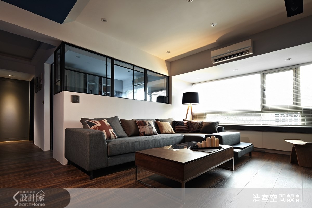 設計師將現代居宅常見 35 坪 3+1 房的標準格局,清楚的劃分各區域的機能與作用,同時兼顧穿透性,使單層居宅也有著寬敞明亮的視覺動線。 此案的設計皆圍繞在輕淺、乾淨的白、灰、棕等等基本色階,而客廳正為此色調的最大集合區塊,連同木質地板在和煦陽光下散發溫馨的氛圍。設計師巧妙將客廳與後方的閱覽空間以大面積玻璃隔開,精準劃分兩者區域,卻又將壓迫感及既有空間隔閡程度降至最低,除拉長走廊的視覺效果外,更能將光源有效引進客餐廳,加強空間透明度;另外,在用餐空間壁面上砌上文化石,有效去除白牆單調感。主臥整片木質貼皮與系統櫃的佈置井然有序,色階調和得相當合宜,充滿簡潔明快的氛圍。 小編的最愛 明亮溫暖的用餐區域搭配天花板與玄關隔板的純白長形木條,牆上的塗鴉掛畫充滿童趣,相當適合一家四口在週末早晨來份溫馨歐陸早午餐,增進一家人的感情。