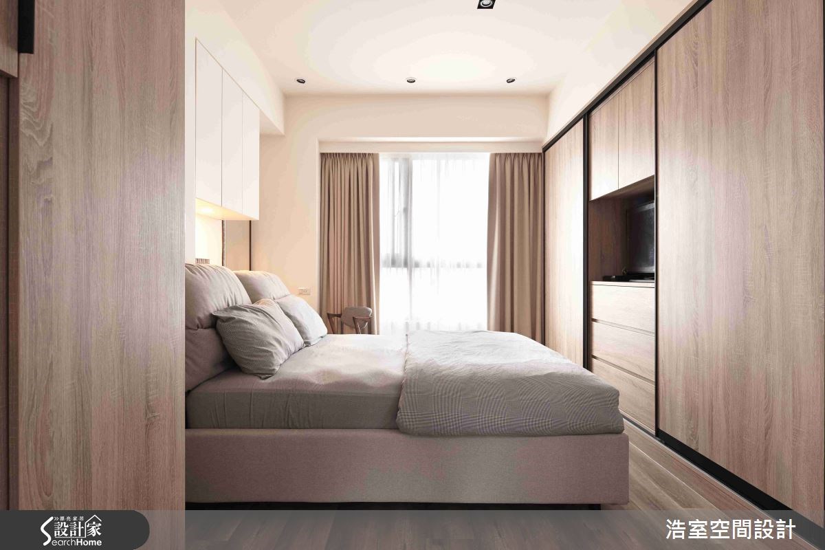 我們今天來到桃園縣這間 25 坪的新成屋,居住者為一家三口的小家庭,為了讓 25 坪的新家能夠更符合全家人的生活需求,屋主請到浩室空間設計邱炫達設計師進行整體規劃,希望能借助設計師的專業能力與美感素養,打造富有實用生活機能與清爽美感的居家空間。 為了讓居家空間符合屋主所喜愛的簡單清爽風格,設計師以現代風揉合北歐手感元素來營造居家美感。帶有春天氣息的淡灰綠色輕輕圍繞著整體空間,搭配色調與觸感都十分溫和的超耐磨木地板,讓人一進門就感受到無比療癒的自然氣息。電視牆面則以白色文化石砌造而成,與深色木質感家具形成色彩對比,為空間帶入溫馨樸實的手作質感,增添了居家的舒適氣氛。 在格局規劃上,因應屋主一家人的居住需求,將 25 坪的空間分成玄關、客廳、餐廳、廚房、書房、主臥以及次臥。而為了讓空間維持寬敞感,設計師以開放式手法來經營公共區域,搭配沙發量體作出格局界定,並以整面落地窗迎入充足的自然光線,營造開闊又明亮的整體視野。廚房外的整面黑板牆則是小朋友的最愛,不但可以在此盡情塗鴉,還能發揮創意留言給最愛的爸爸媽媽,讓一家人的情感更加凝聚緊密。 小編的最愛 位在沙發後方的餐廳區域,以簡單的大木桌與餐椅提供了方便的用餐機能,而展示櫃不但成為空間的視覺焦點,也賦予餐廳區域閱讀與工作的多重機能,讓空間的使用效益發揮到極致。晚餐後,小朋友可以在此書寫功課,而爸爸媽媽則能在旁邊工作或陪伴,讓全家人團聚的時光更親密了。