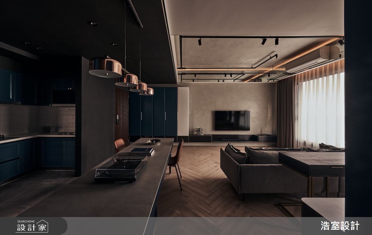 浩室設計以超耐磨木地板、鐵件、噴漆、義大利特殊漆、實木、環保建材的搭配應用,呈現混搭風居家氛圍,將此間20坪、兩房、單層、新成屋(5年以下)打造成舒適愜意的家庭空間,完成1位大人全家人的夢想之居。