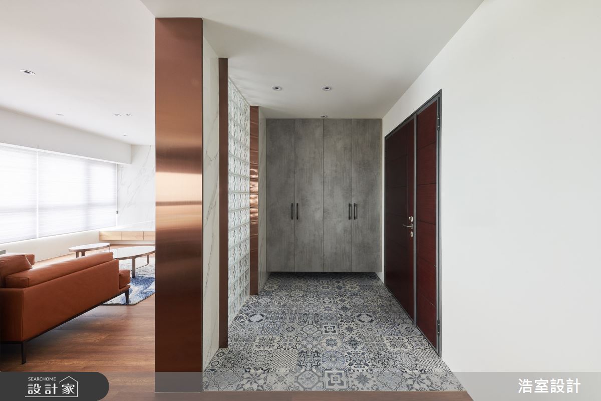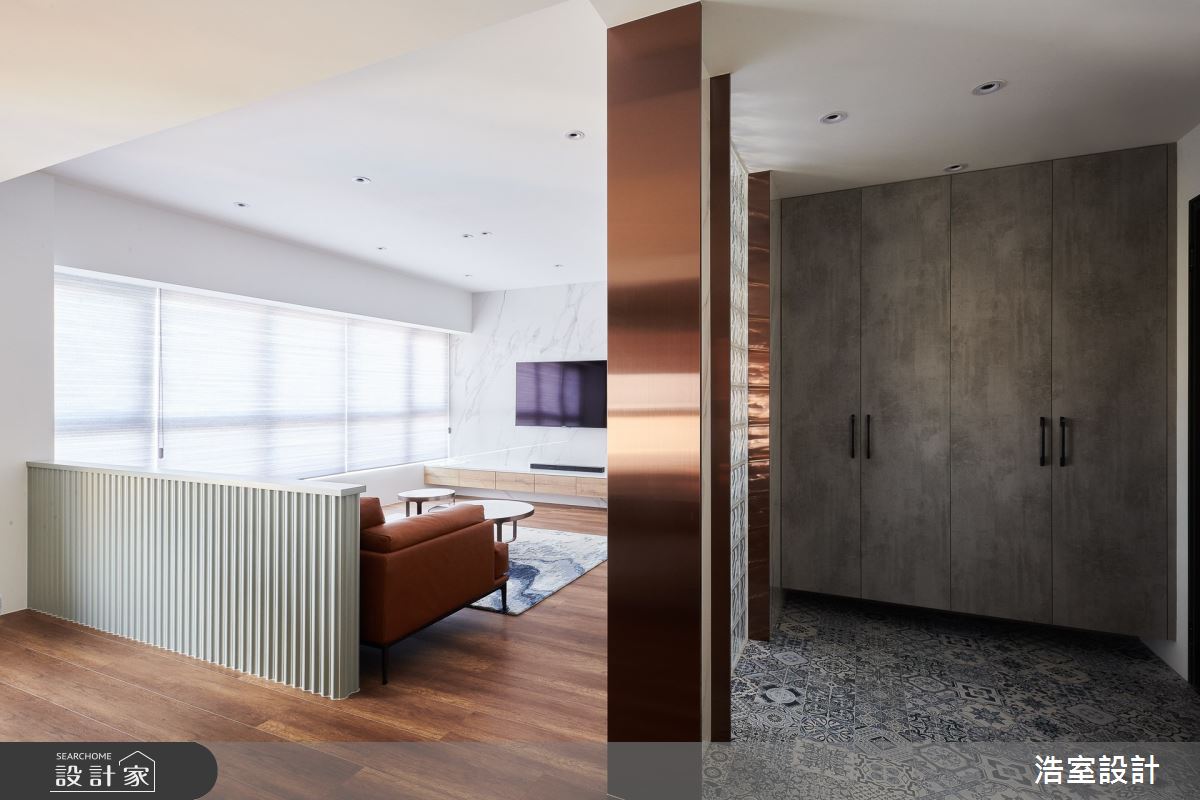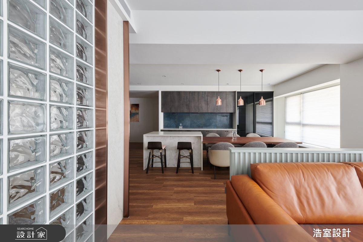 由浩室設計精心規劃的50坪三房住宅空間,家庭成員一共有2位大人、1位小孩。因應屋主需求,設計師運用現代風作為主軸,搭配乳膠漆、超耐磨木地板、鐵件、系統板材、磁磚、玻璃磚,打造全家人的夢想家居。