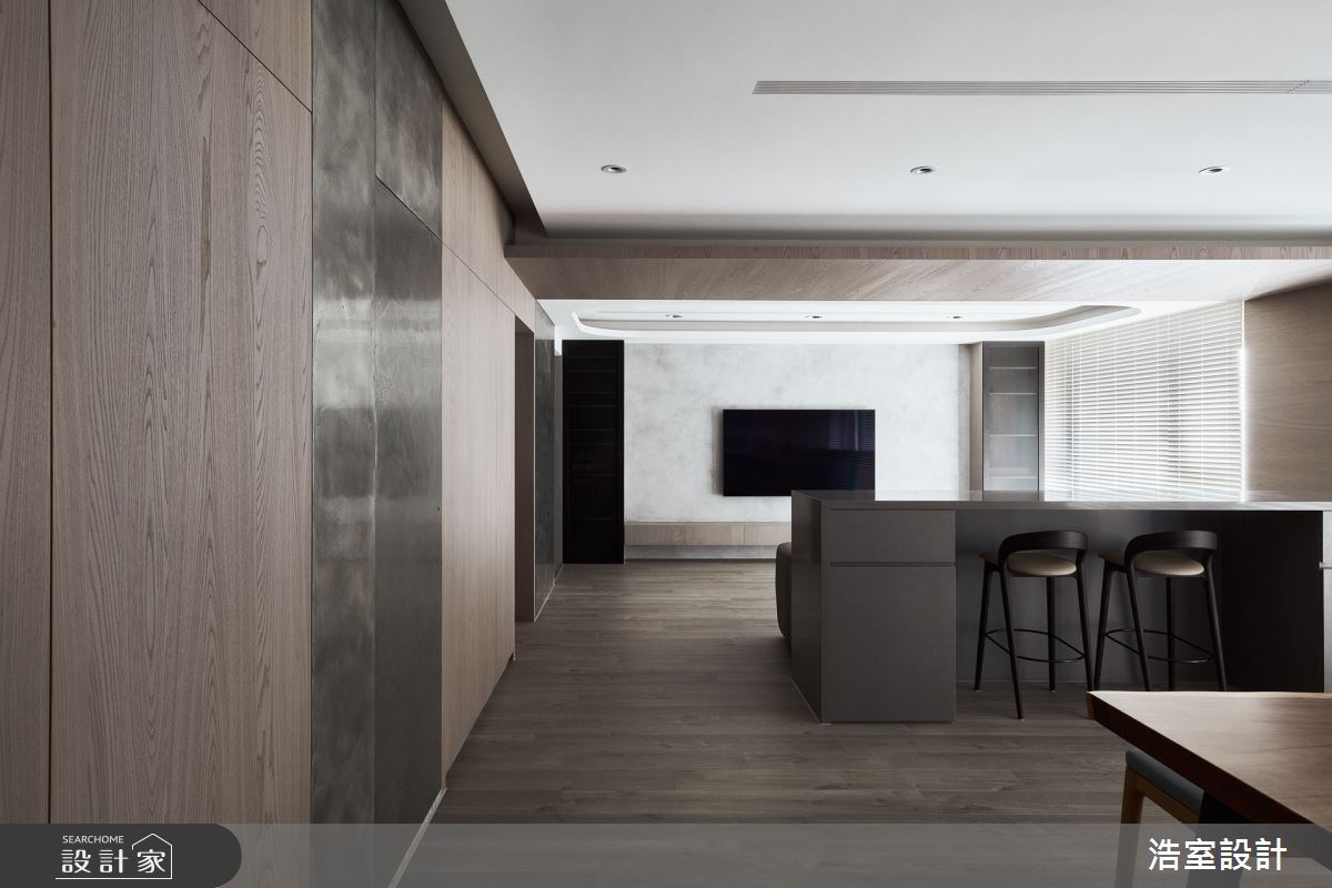 來自浩室設計的38坪現代風住宅案,屋主一家人共有1位大人,是一間單層新成屋(5年以下)的三房格局,設計師藉由建材以超耐磨木地板、義大利特殊漆、義大利金屬漆、環保建材的搭配應用,實現一家人的理想生活。
