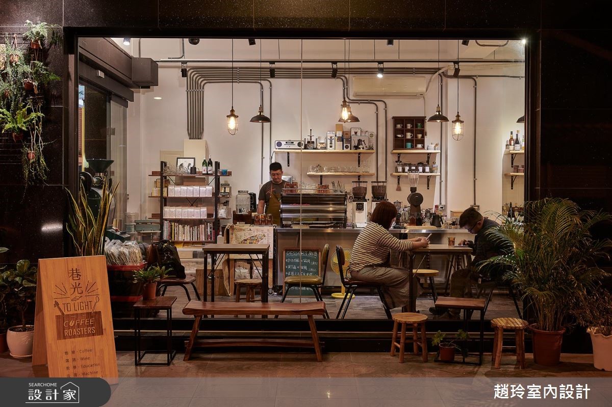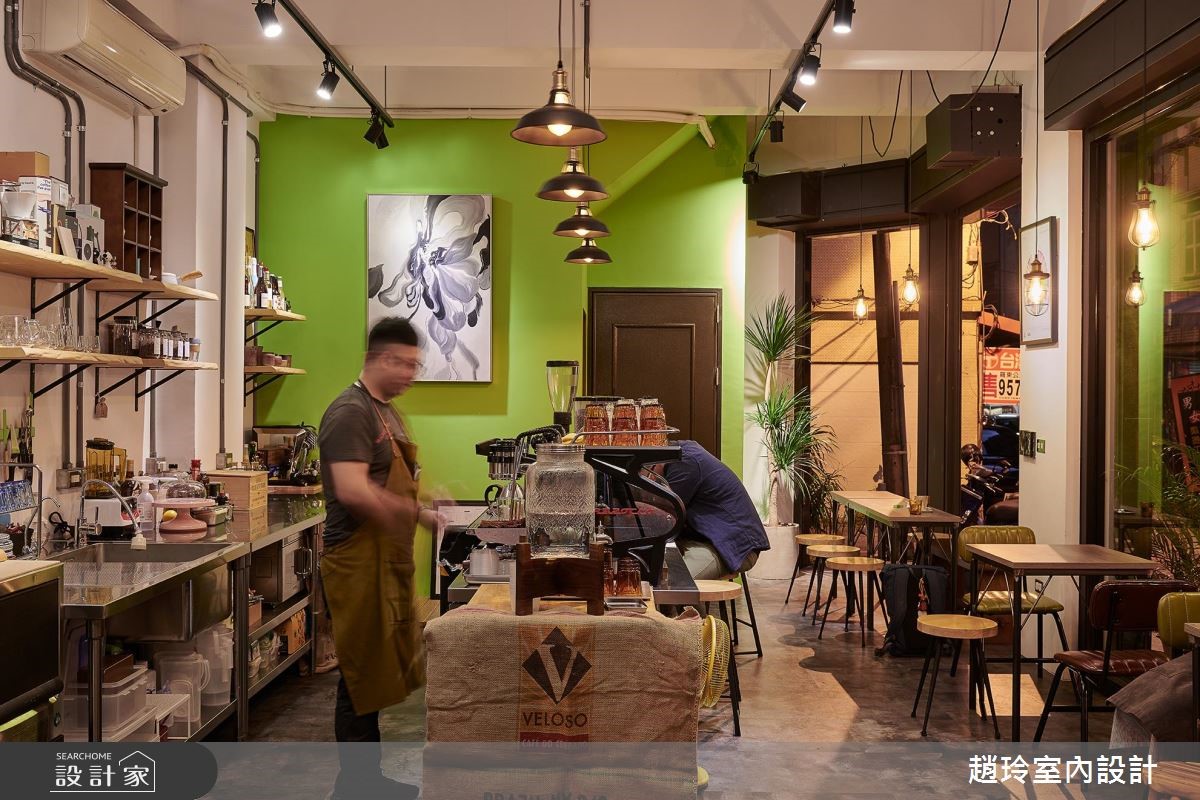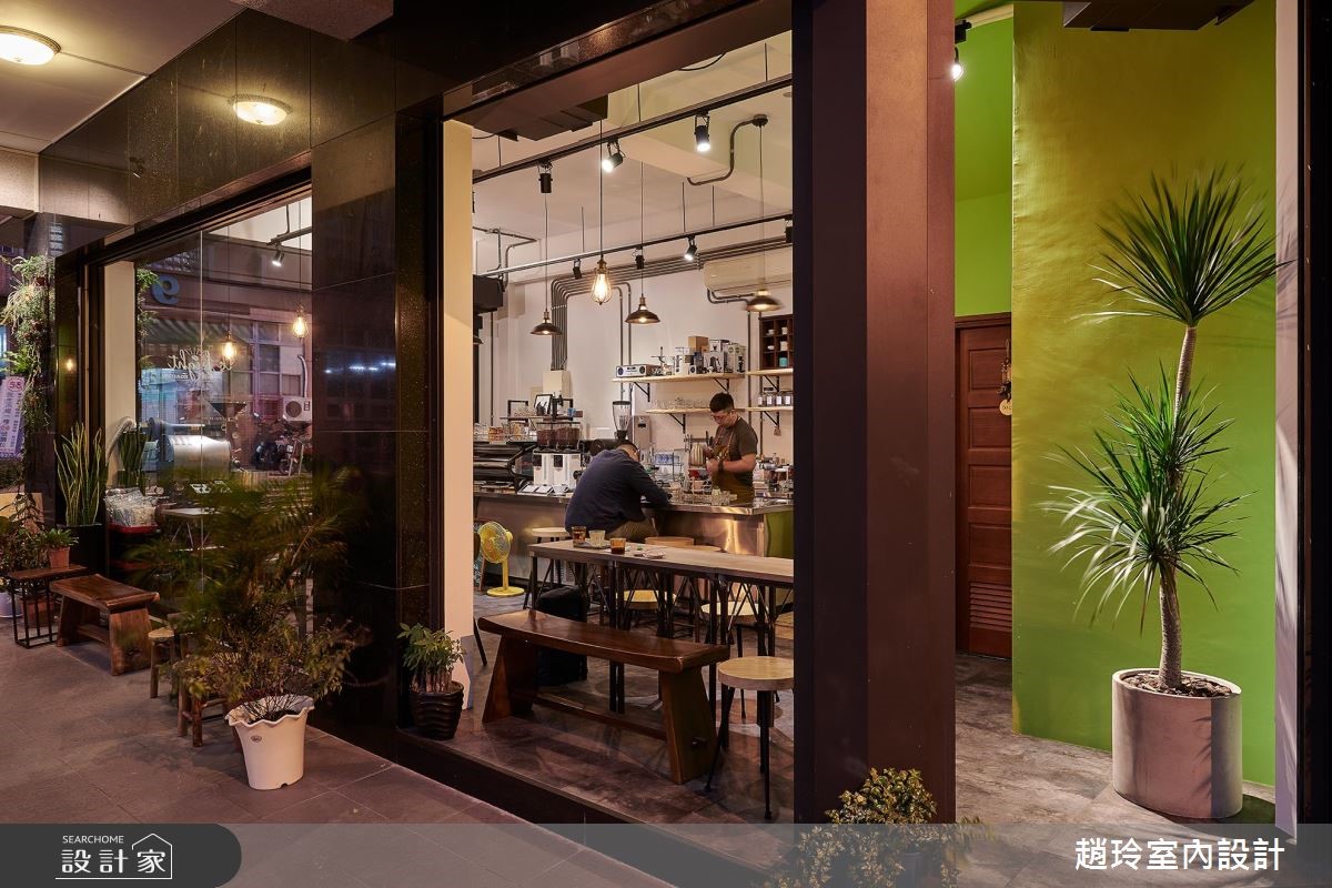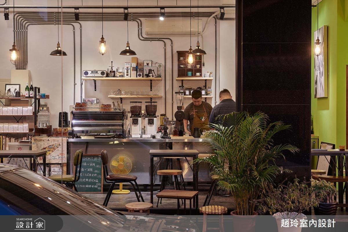 坐落於城市角落的咖啡店,擁有絕佳地理優勢,針對無法更動太多格局型態的租屋空間,設計師以粗獷感十足的 Loft風工業特色展現,適度地清新植栽加入,讓 10 坪小空間成功吸引眾人目光,繁忙的都市生活,彷彿被角落咖啡調慢了步調。 為發揮轉角店面位置,兩側門面皆用透明玻璃罩設計,從白天到黑夜都別有風味,吧檯區後方裸露且彎曲攀岩設計的管線,成為店內主牆視覺,無法更動主結構的限制,佈置、建材、家具配置格外重要,適度開放的層架與金屬鐵架設計,配合樑下燈線及吊燈,奠定完整且風格鮮明的經典復古工業感。座位區則選用木質與皮件單椅組合,呼應工業氣息,並把最佳採光位置留給顧客,視覺觀感、味覺享受完美契合。 小編的最愛 充滿工業設計的咖啡廳中,利用活力清新的綠色牆,平衡粗獷冷調氣息,並交由或大或小、垂直壁掛植栽點綴,為空間染上閒適氣息,再掛上一幅白色油畫,呼應咖啡拉花之美。