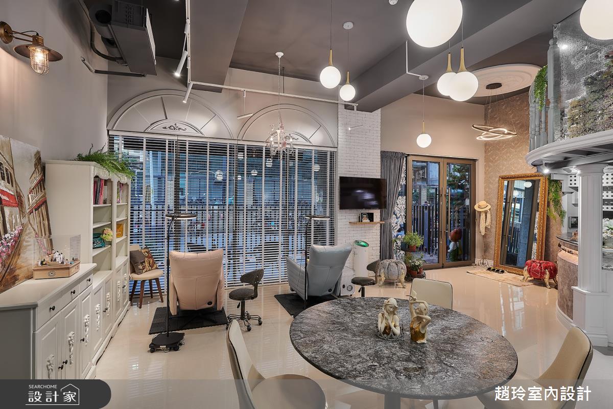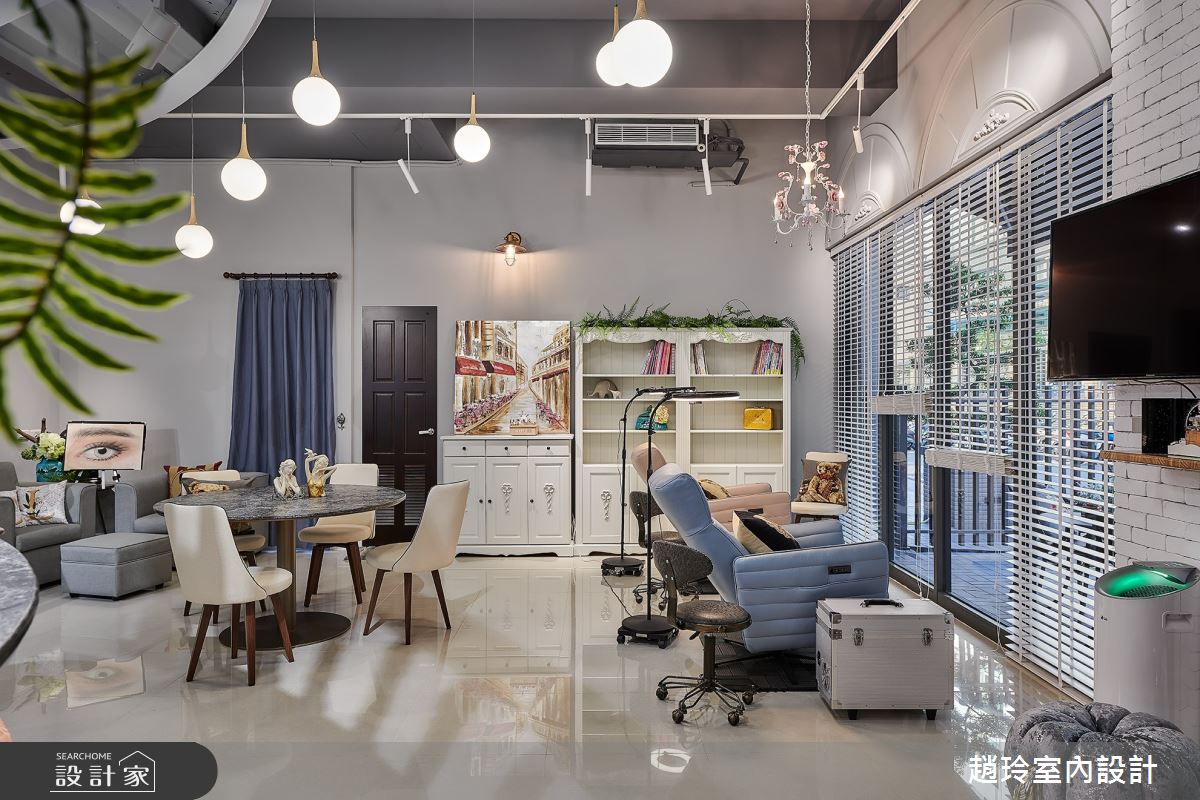 趙玲室內設計以乳膠漆、超耐磨木地板、鐵件、烤漆、軌道燈、線板、噴漆的搭配應用,呈現新古典的風格氣息,將此間12坪中古屋(5~15年)優雅詮釋成舒適愜意的商業空間。