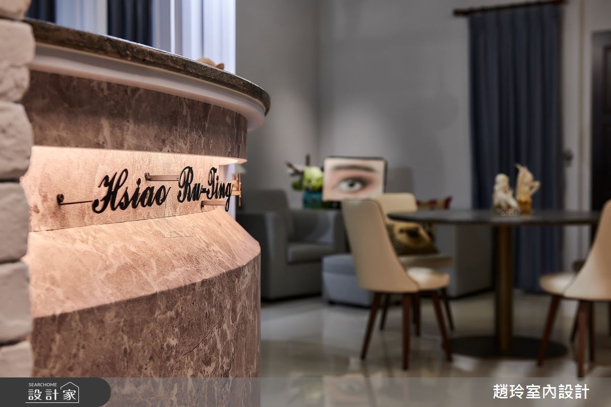 趙玲室內設計以文化石、鐵件、噴漆的搭配應用,呈現新古典的風格氣息,將此間19坪新成屋(5年以下)優雅詮釋成舒適愜意的商業空間。