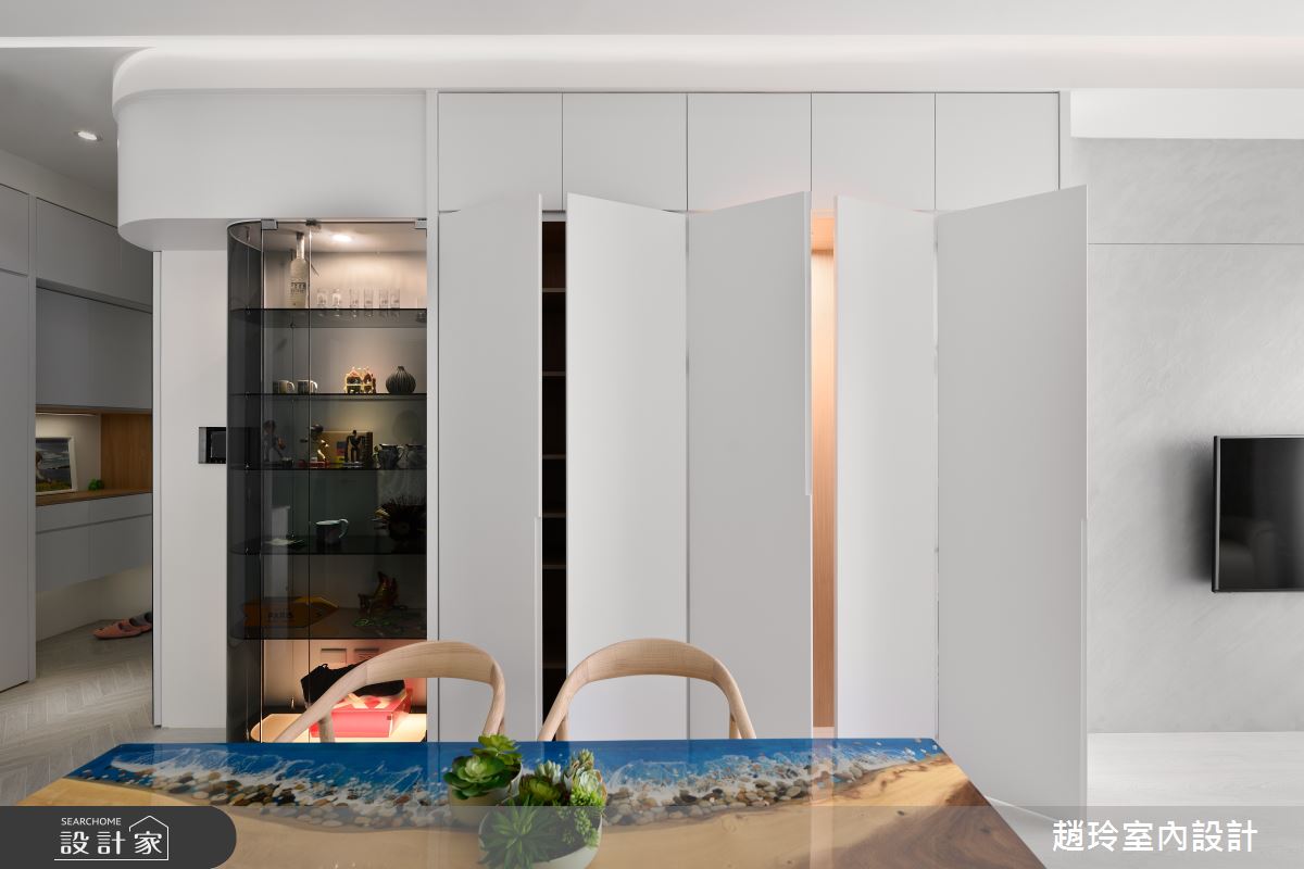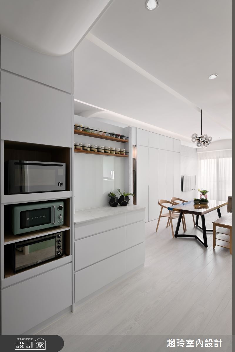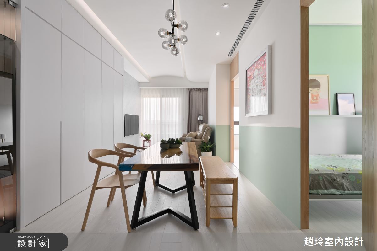 來自趙玲室內設計的25坪北歐風住宅案,屋主一家人共有2位大人、2位小孩,是一間單層新成屋(5年以下)的三房格局,設計師藉由建材以油漆、乳膠漆、壁紙、水泥漆、磁性漆/磁性黑板漆、超耐磨木地板、石英磚/拋光石英磚、茶玻、烤漆、系統板材、磁磚、人造石、賽麗石、石材的搭配應用,實現一家人的理想生活。
