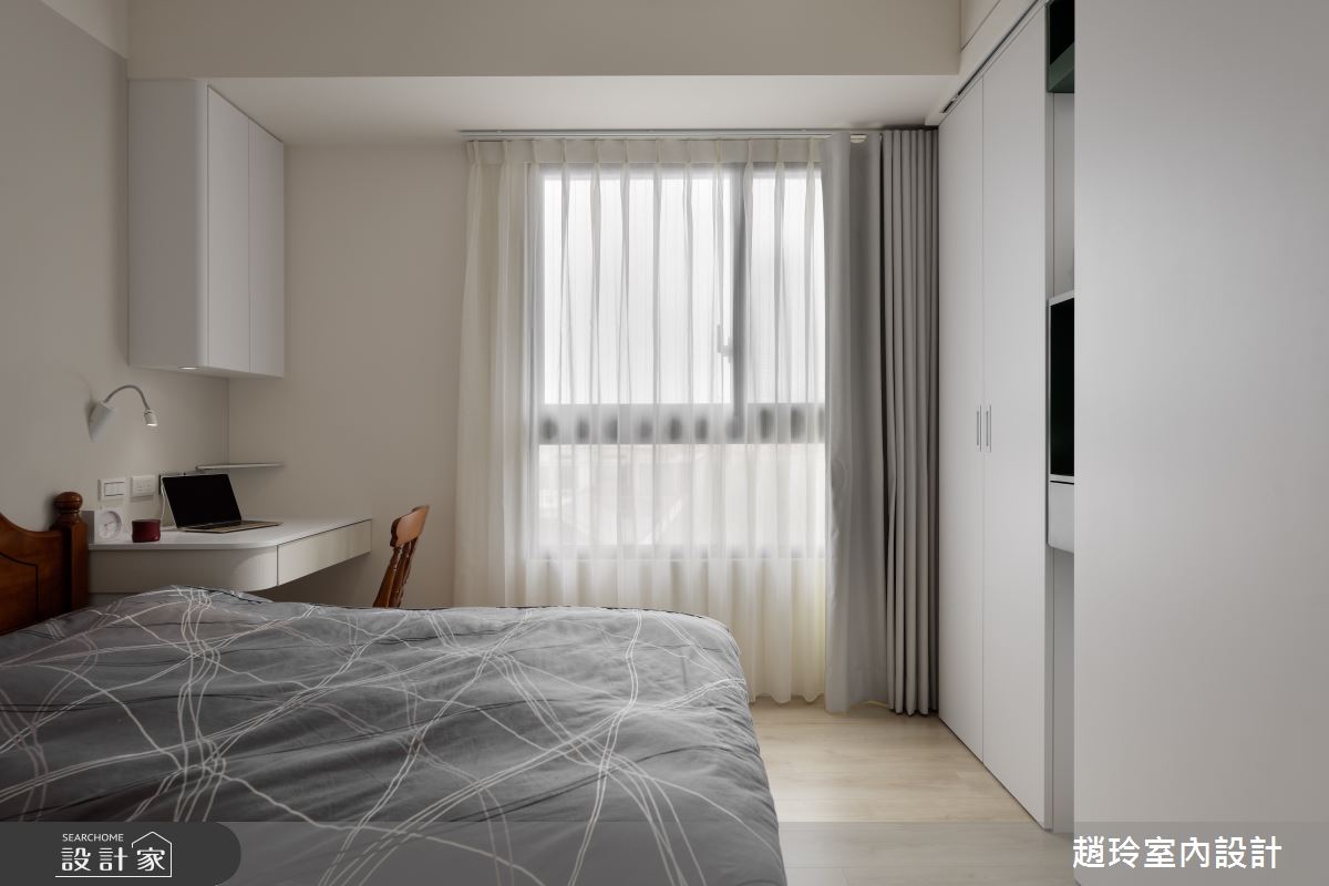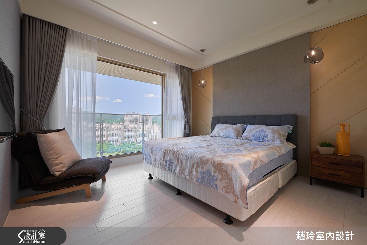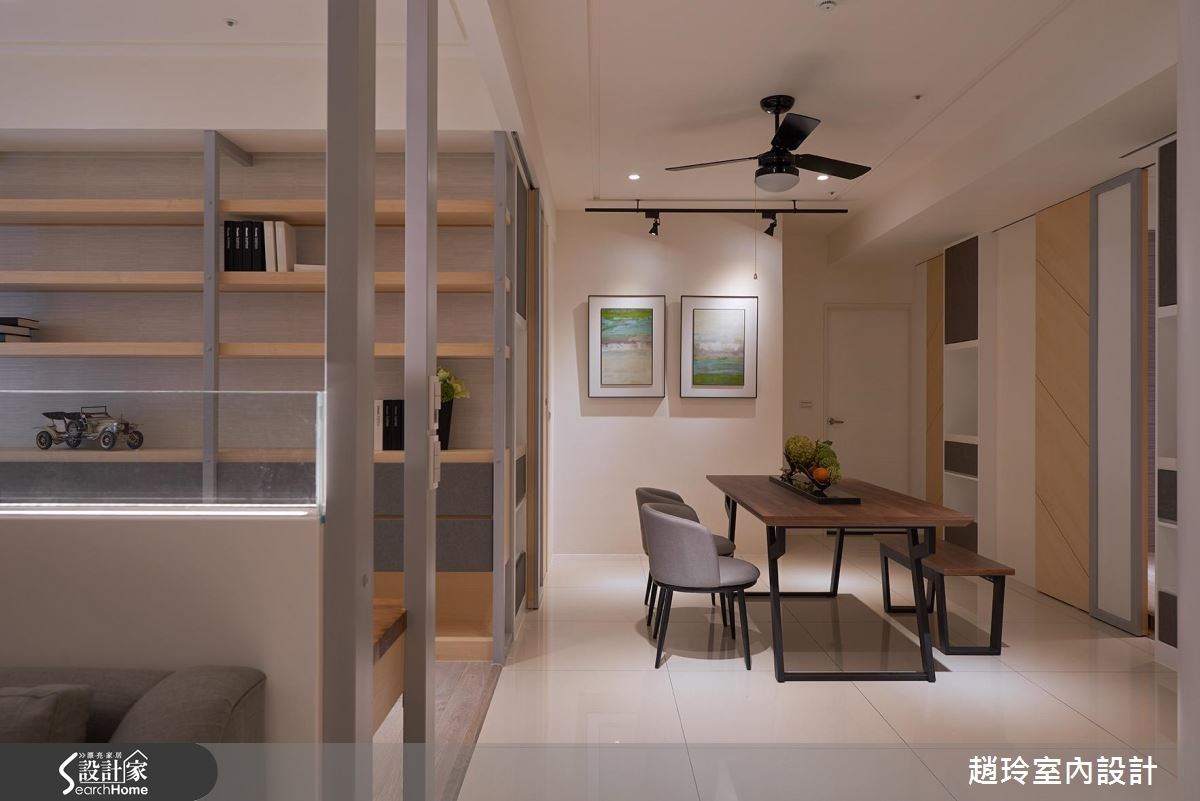 生活不需要太複雜,也不必讓隔間限制住生活動線!這處單層住宅以簡單、舒適為主軸,拉開大器的空間寬闊度,再搭配上溫醇的淺色調搭配,無論身處於哪一個空間,都能感受到舒適的開放感! 客廳、書房、餐廳等主要空間,減輕了實體隔間的負擔,採取半開放式設計,讓彼此相互連結成一個寬敞大空間,將坪效優勢發揮到最大,在不同的領域都能感受舒適空間感。因應原有的屋高不高及樑體位置,設計師以具斜度的天花設計敞開空間尺度,呼應斜紋木質拼法、電視牆的橫向石質紋理,創造出細緻的質感變化。餐廳處的櫃體展示,改為透光石取代一般的嵌燈打光,更加凸顯溫和、均衡的光影感受。私領域利用灰色皮革裝飾床頭背牆,而兩側的斜紋木皮不只是風格造型營造,也可以視需求開闔,讓後方隱藏的小窗為睡眠區帶來更充裕的日光。 小編的最愛 小小的改變,其實可以帶來不同的生活趣味性,設計師在沙發背牆中嵌入展示格,讓訂製的小盆栽以不同的斜度,呼應整體大方向的設計,也點綴出綠色鮮活意趣。