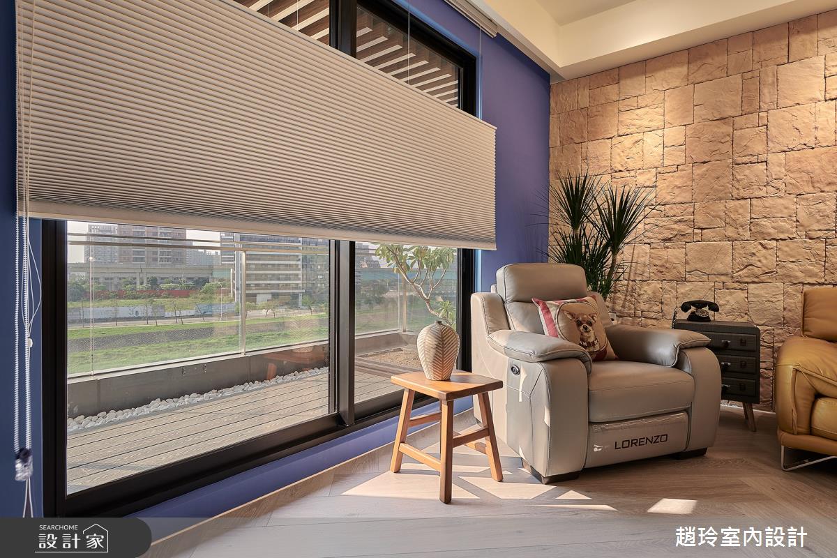趙玲室內設計以進口木百葉、噴漆、鐵件、實木板、木皮、壁紙的搭配應用,呈現美式風居家氛圍,將此間45坪、兩房、單層、新成屋(5年以下)打造成舒適愜意的家庭空間,完成2位大人、1位小孩全家人的夢想之居。