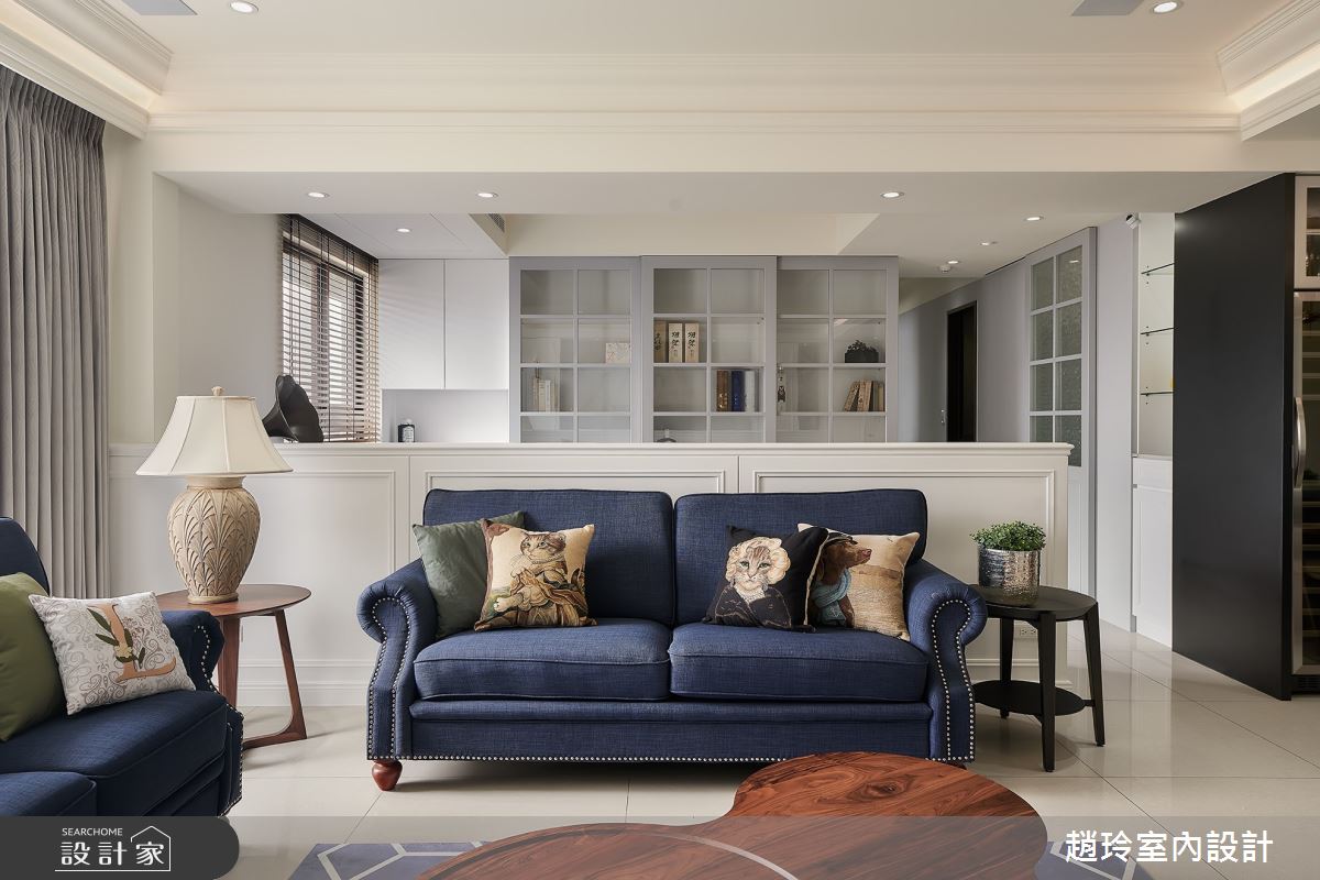 由趙玲室內設計精心規劃的50坪三房住宅空間,家庭成員一共有2位大人、2位小孩。因應屋主需求,設計師運用美式風作為主軸,搭配壁紙、木作貼皮、大理石、噴漆、玻璃,打造全家人的夢想家居。