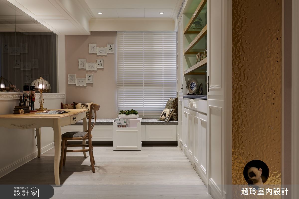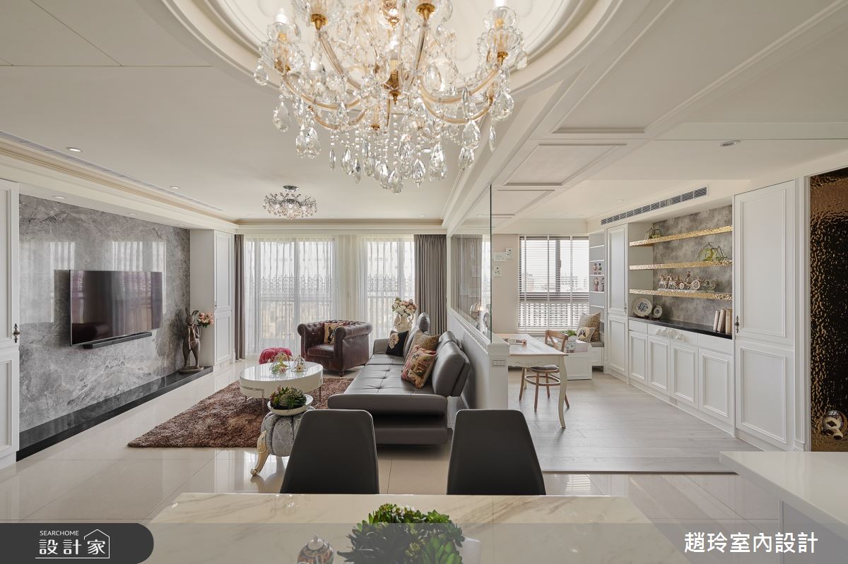 由趙玲室內設計精心規劃的38坪四房住宅空間,家庭成員一共有2位大人、1位小孩。因應屋主需求,設計師運用新古典作為主軸,搭配油漆、壁紙、水泥漆、超耐磨木地板、鍍鈦金屬、木作貼皮、烤漆、壓克力、系統板材、大理石、線板、噴漆、石塑地板,打造全家人的夢想家居。