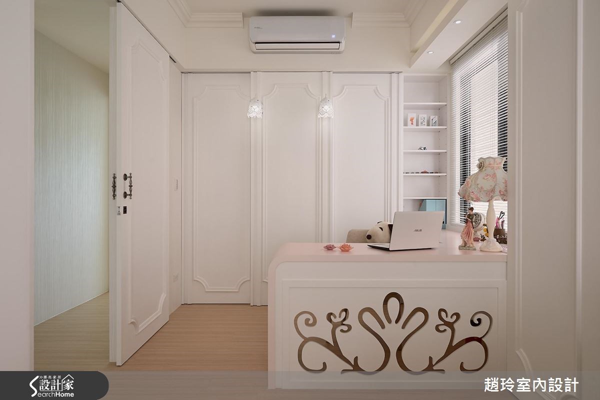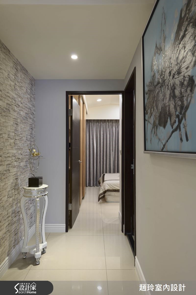 40 坪的生活場域,設計師將屋主夫妻的舊家具帶入空間,並平衡現代、新古典元素,使整體樣貌既不過度繁複,亦保有輕鬆俐落,同時藉由牆面的延伸,達到放大視野與串聯領域關係的效果,演繹出時尚家居的美麗樣貌,快跟著小編一起走進來看看吧! 入門處,玄關天花配置水晶燈,作為華麗的開場點綴,並透過電視牆串聯、橫向石材紋路的延伸,將動線及視線導引至廳區公領域;客廳則採灰色、咖啡色穿插點綴,替白色底調添入豐富層次,電視牆於下方加入線板飾花,與現代感大理石材質形成混搭異趣,彰顯對於細節的細膩處理;並串聯餐廳、書房之間關係,以一面櫃體做出領域區隔,保留兩側走道串成回字動線,讓櫃體可作為餐區主牆、書房收納兩面使用,構成通透視覺感與空間上的互動交流;主臥床頭給予特殊造型,將牆面延伸至上方天花,採燈光、線板、飾花、壁紙等包覆突兀樑線,結合兩側對稱的假柱設計,營造出帶有宮廷感的典雅質韻! 小編的最愛 男孩房則根據使用者個性,帶入較多現代語彙,且提升空間材質的豐富性,採實木、繃布等穿插鋪述牆面,以光澤感壁紙點綴櫃面,表現質材的細緻肌理!