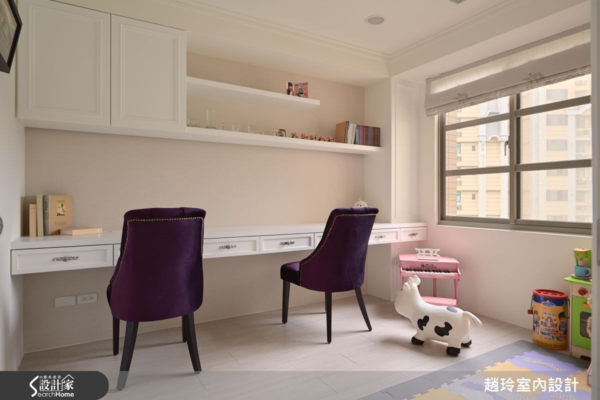 屋主夫妻因為在 9 年前購屋時並未拘泥於動線規劃,隨時間過去原有格局已不符全家人生活需求,設計師保留原有房屋結構,並配合妻子與女兒需求,注入許多女性化元素,將中古屋改造成煥然一新的甜美居宅。 有著「聽某嘴」的貼心丈夫,以妻子的意見為主,在房屋各處引入粉嫩色調與精緻單品,客廳天花的美式造型線板搭配奶油色調仿古家具,打造富有新古典氣息的空間,而文化石電視牆與灰階沙發背牆上的投射照明,則為客廳增添美術館般的氛圍。針對沒有玄關的空間,設計師在餐廳與大門處設置花紋格櫃,兼具收納及分界功能,餐廳上方的水晶吊燈與圖騰牆面皆是精緻花朵造型,廚房與收納空間則隱藏在雕花門片後,維持空間的美觀與優雅。富有典麗氣息的主臥還特別為女主人建置了造型梳妝檯,房門一開就可以和寶貝女兒在閱覽與遊戲功能兼具的兒童房盡情玩耍;而兩夫妻的小公主睡在名符其實的公主房,設計師利用馬卡龍色調與紗幔給予小女孩一個柔嫩的夢。 小編的最愛 設計師特別保留沙發背牆,在牆後設計了可供一家人玩耍閱讀的歡樂小天地,貼心的在動線規劃與分配下滿足一家人的需求。