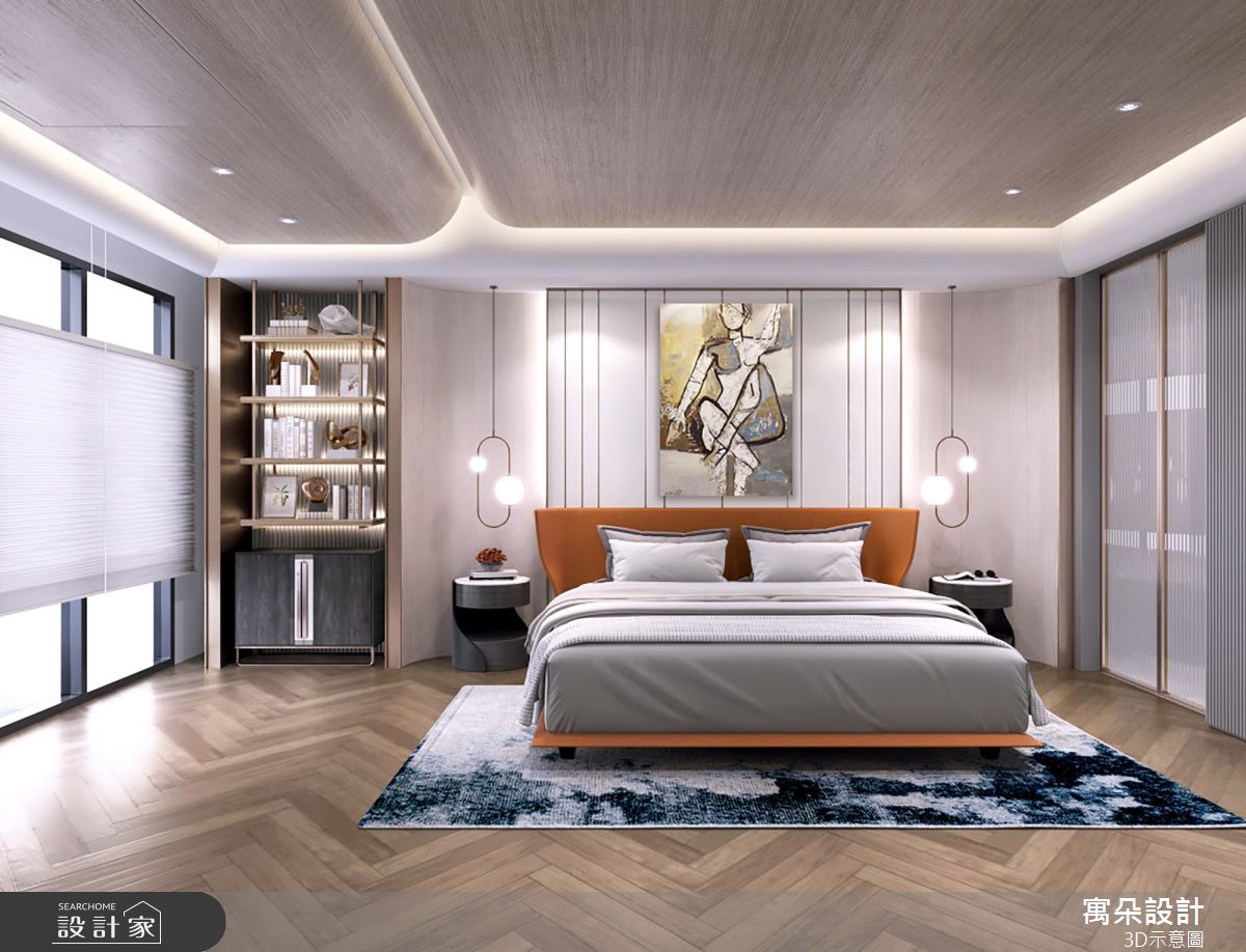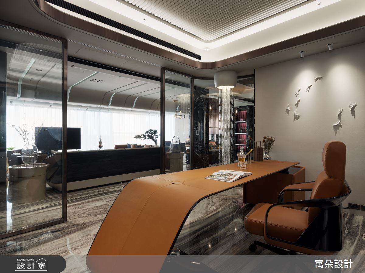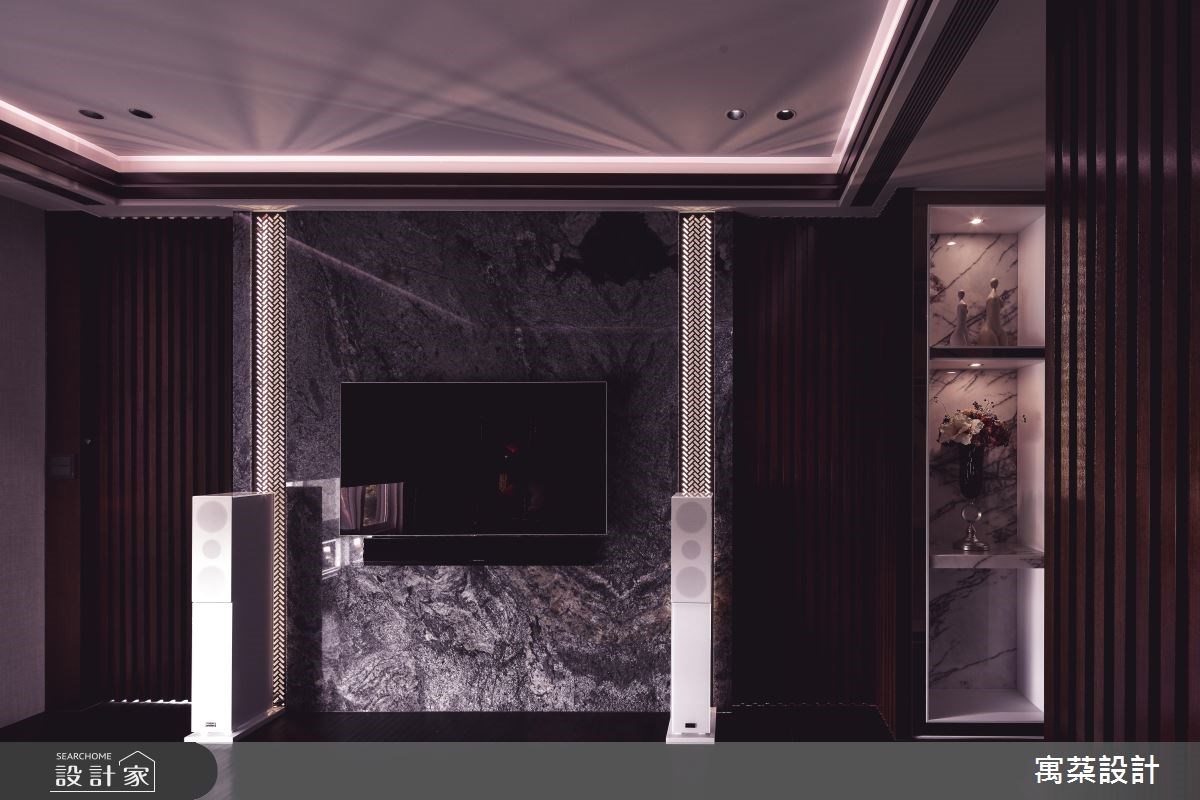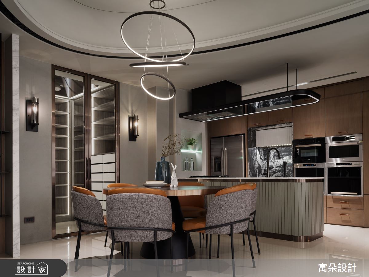 將多年的中古屋整頓翻新後,百坪的空間重新以極致的美學饗宴登場,藉由大理石、玻璃、光帶、義大利特殊漆的材質安排下,調和出蘊含戲劇性與高度藝術的室內氛圍,混搭出摩登非凡的私人豪邸。 義大利特殊漆舖陳的壁面,營造出車庫空間的基底,周圍以光帶線條描繪出立體層次,光影映照在超跑車身,烘托時髦且優雅的身形。客廳天花板的中央拉出深度,整體空間更顯挑高,電視牆以華麗感的大理石鋪陳,立面搭佐LED燈帶,營造出震撼的視覺效果;琴房的門片在設計師與藝術家朋友的提筆下,形塑藝術非凡的迷人景緻;餐廳領域裡,華麗的水晶吊燈、紅色的餐椅擺設,以及精緻金屬鏤空造型的展示背牆,創造出極致的生活體驗;客廳沙發的另一側為琴房,兩廳之間還打造酒窖室,牆壁以鏡面鋪設,單椅與茶几的擺設,彷彿走進風格酒吧裡品嚐酩酊,壁面的酒櫃設計更讓屋主珍藏的佳釀獲得絕佳收納。 小編的最愛 臥室空間的設計更是美輪美奐,多元的風格設計與安排,加上完善的更衣室、衛浴等機能,實現夢想中的家屋風貌。